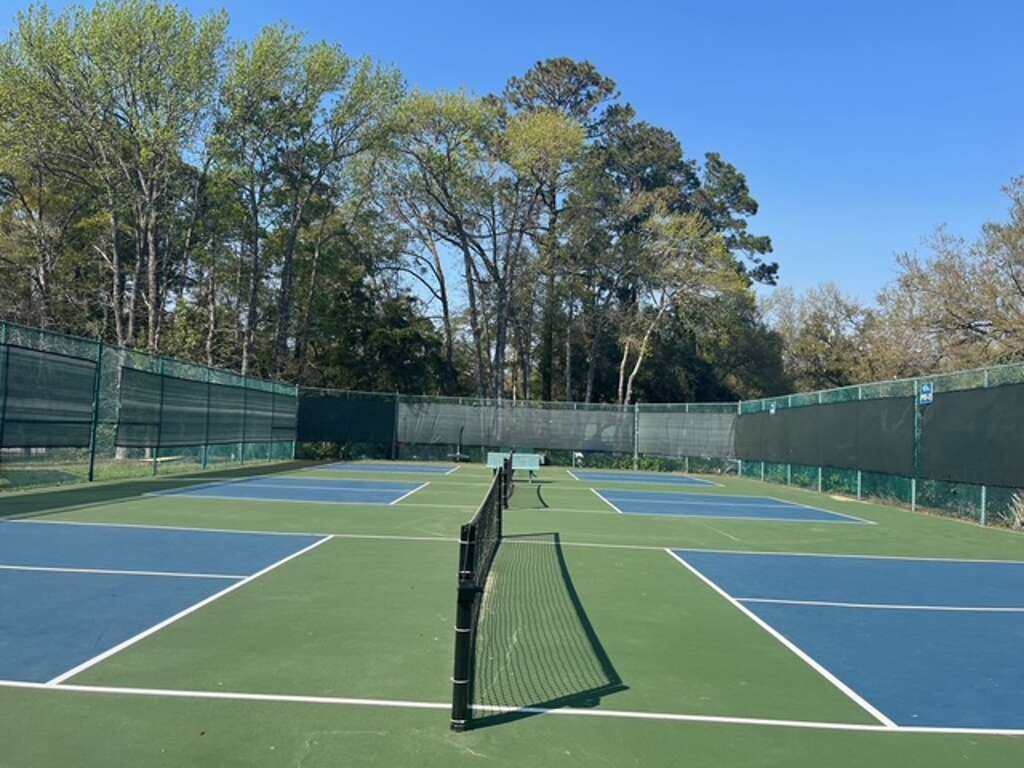 Resort amenities include a heated swimming pool, hot tub (must be 18+ to access the hot tub and tanning shelf), a sunbathing pool, and a kiddie pool with a whimsical mushroom waterfall. Tennis and pickleball enthusiasts will love the on-site courts and tennis shop—perfect for reserving court time or picking up new gear.