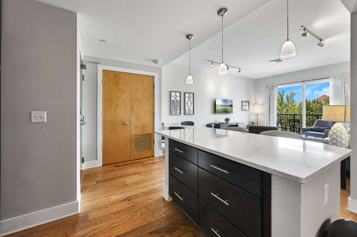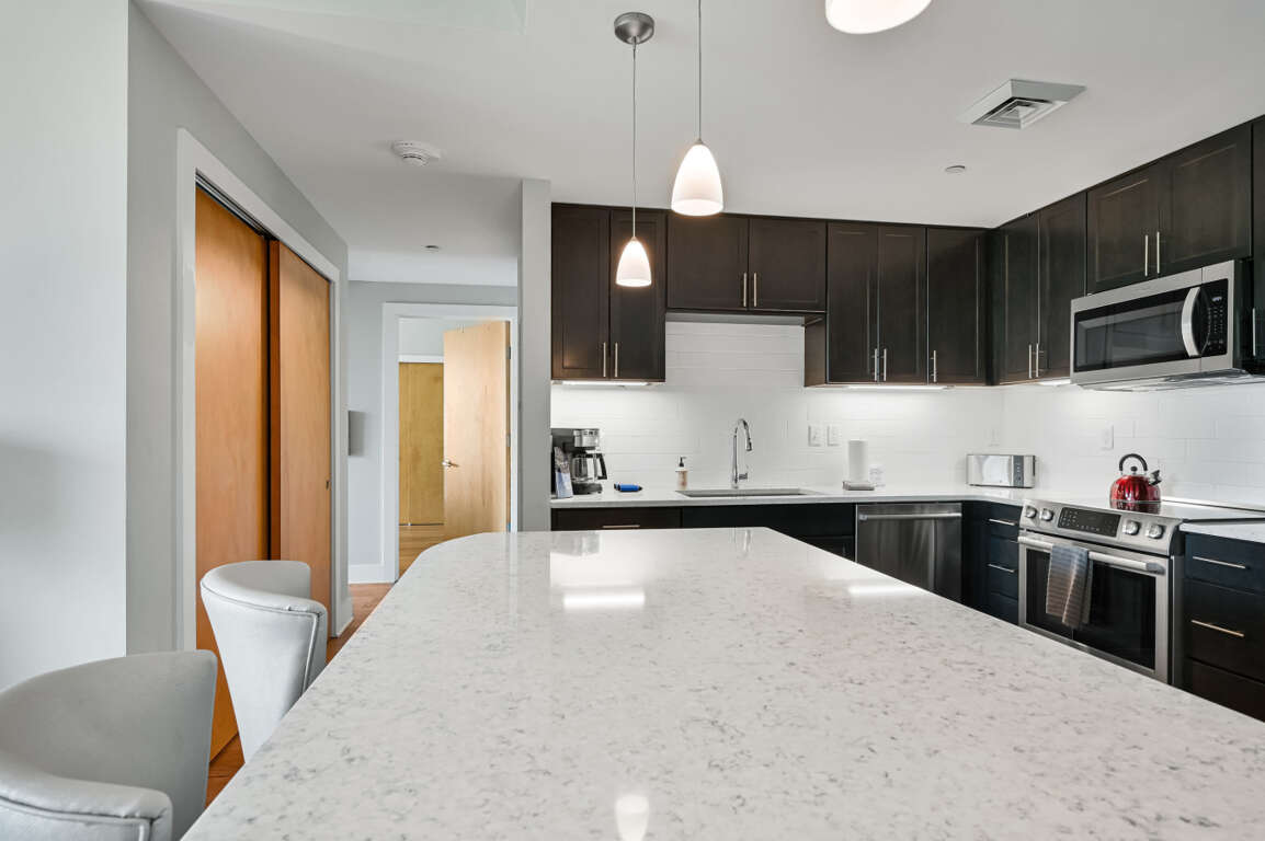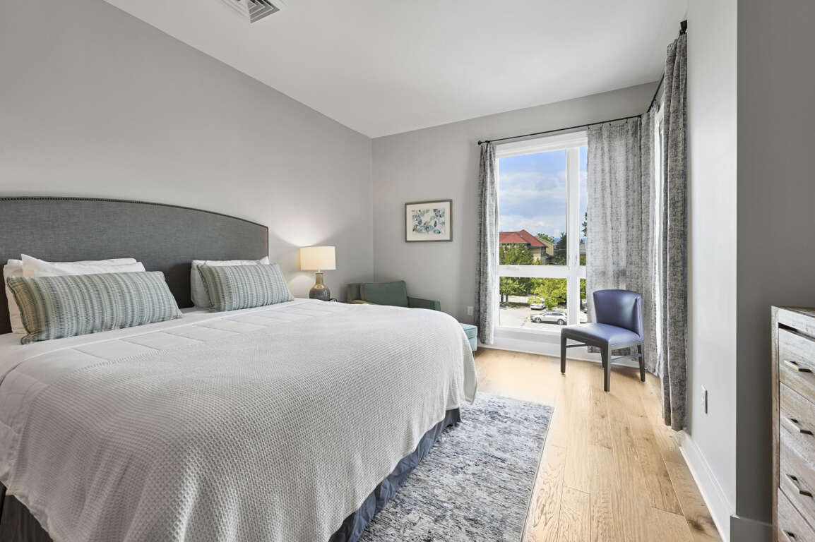 Condominium in the heart of downtown Asheville. This ADA accessible 2 king bedroom, 2 bath unit has all the premium amenities you can imagine, including a cozy corner reading nook in the main bedroom. This residence features a full kitchen with a large island, dining room, living room, and balcony with west-facing mountain views.