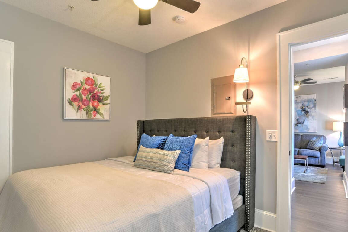 Located in North Asheville, guests can enjoy neighborhood restaurants, yoga studios, and several shops while also enjoying the convenience of being less than 1 mile from downtown. There is one parking space (unassigned) for this rental located in the parking lot beside and behind the King James Building.