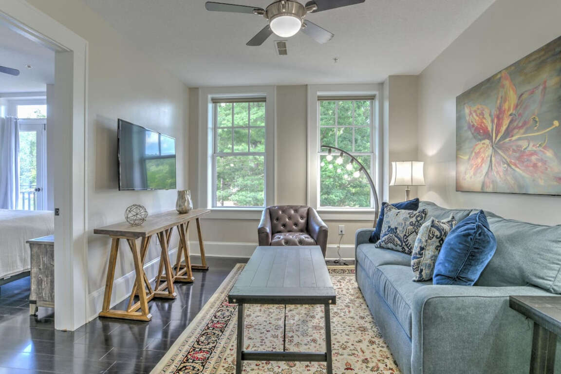 Centrally-located vacation condo nestled within a historic building in Asheville, complete with internet access, air conditioning, TV, and dishwasher. Explore the charm of the local neighborhood.
