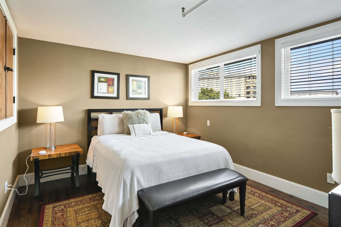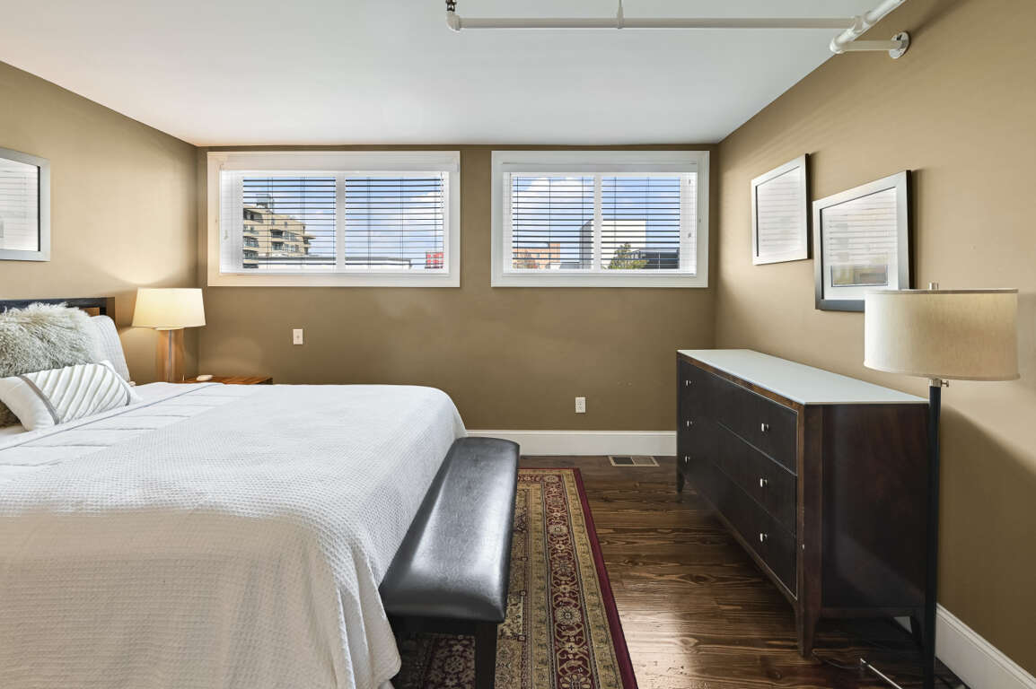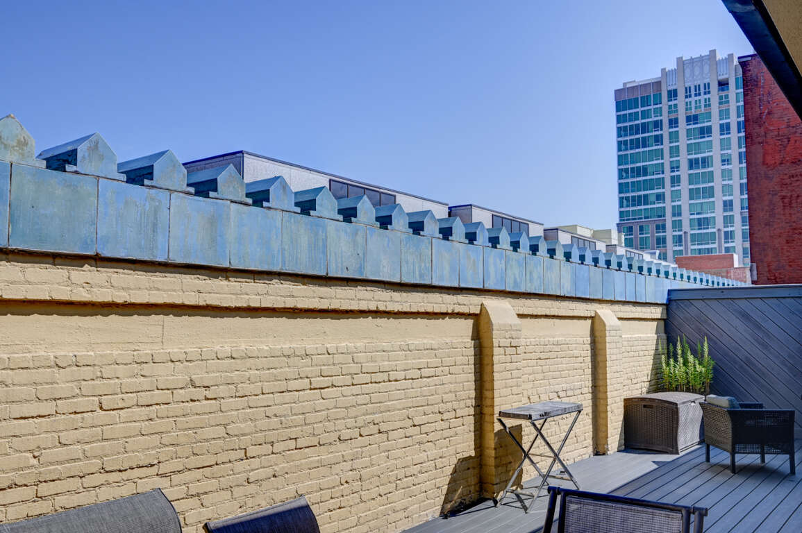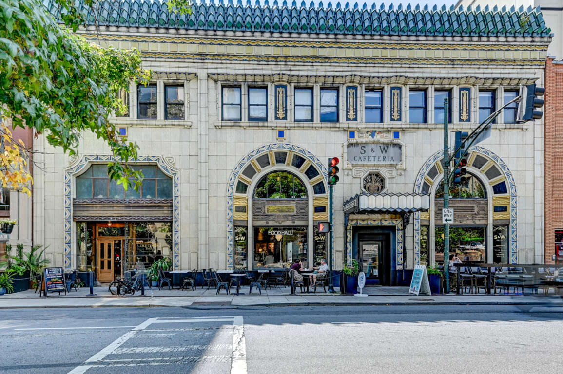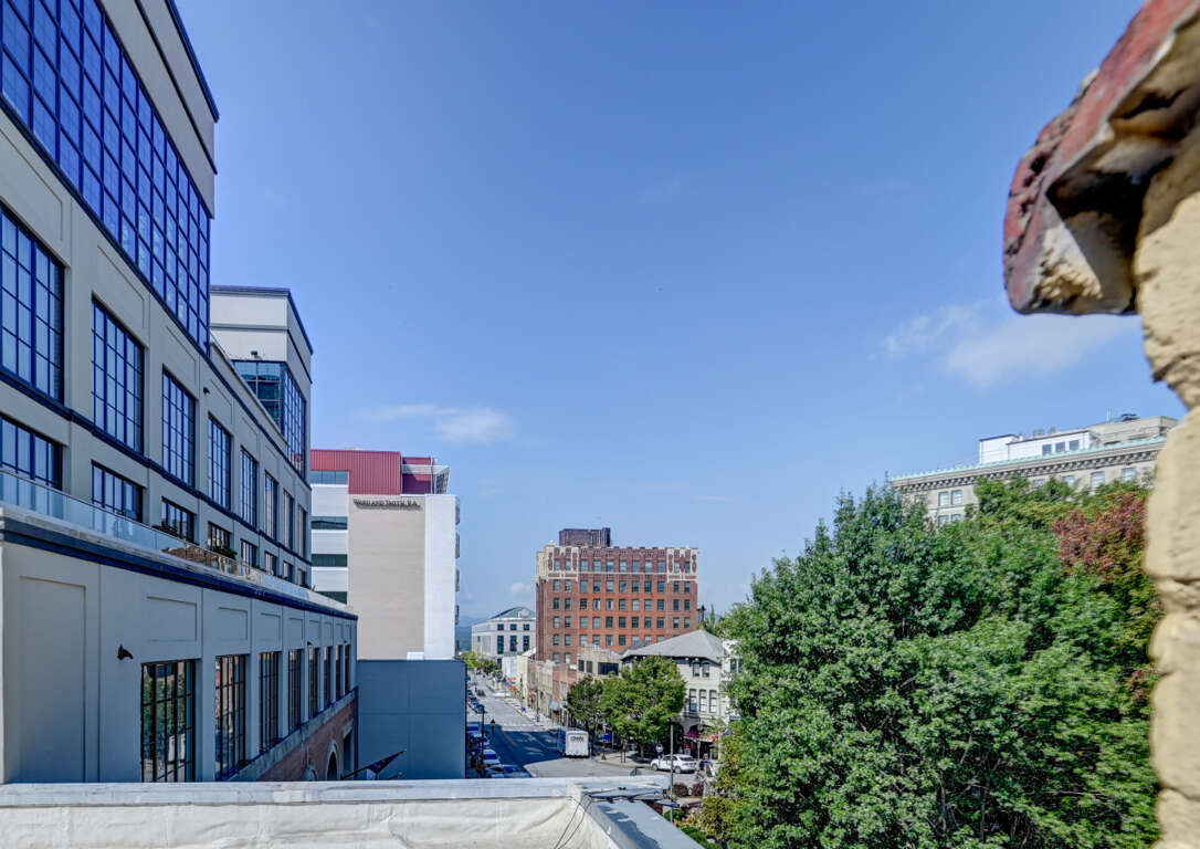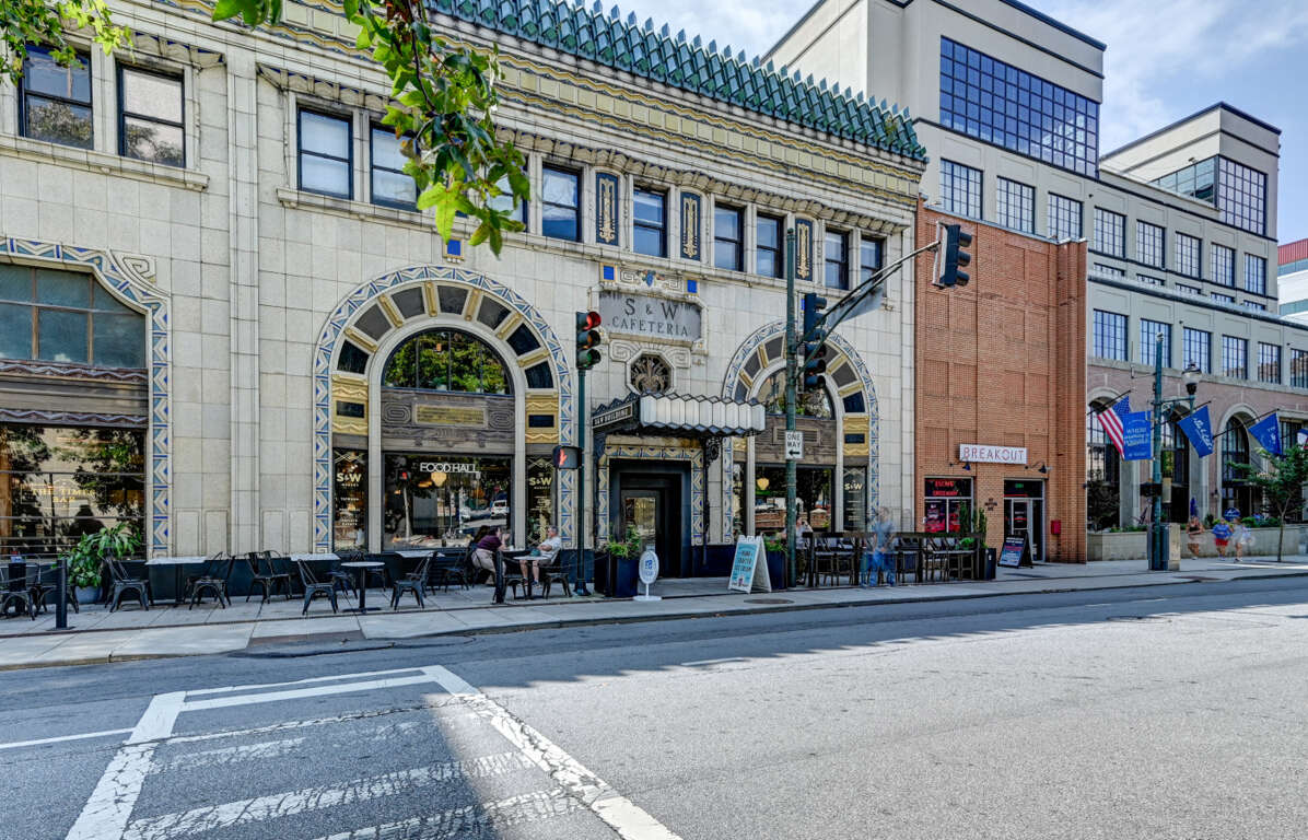This spacious condo is on the top floor of the historical and iconic downtown S&W building, a beloved city landmark that was designed by renowned architect Douglas Ellington and constructed in 1928 at the height of Asheville's building boom. The building stands as one of Asheville's most treasured examples of Art Deco architecture, highlighted by its ornate facade with gilt glazed terracotta tiles and arched windows. The Urban Trail and the Asheville Architecture and History Walk, popular self-guided walking tours of downtown, both include a stop at the Art Deco masterpiece, which is listed in the National Register of Historic Places. A recent major renovation of the building brought a food court, a brewery bar, and community spaces to the main floor, and updated Asheville Landing with modern amenities, bringing a contemporary feel to the historic landmark.