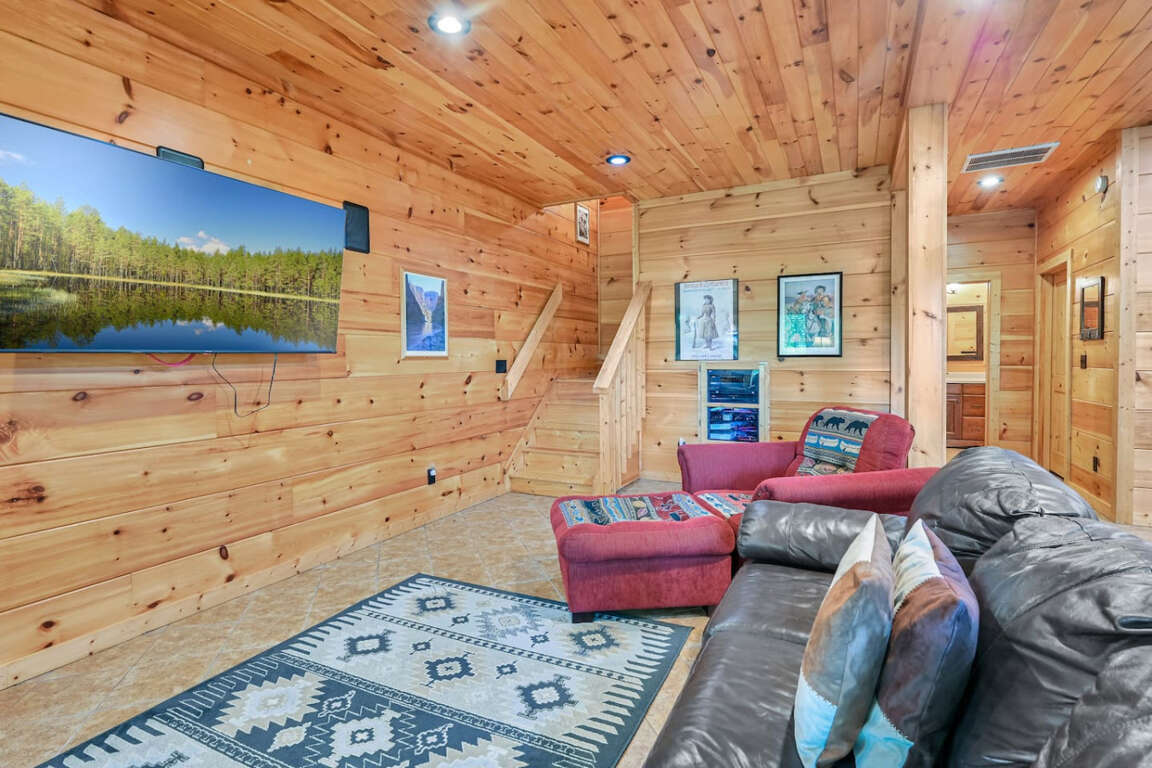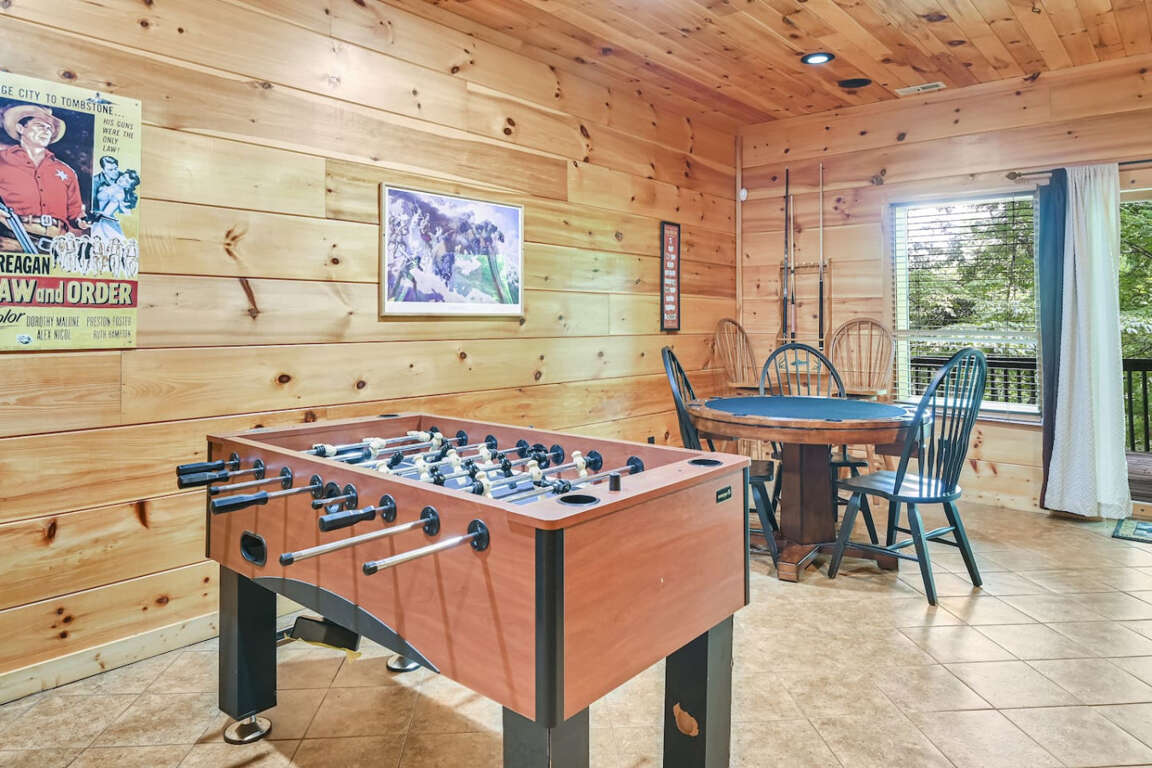 House in Lake Lure with three bedrooms, game room, and two decks; a practical vacation rental for groups needing flexible beds and a full kitchen.