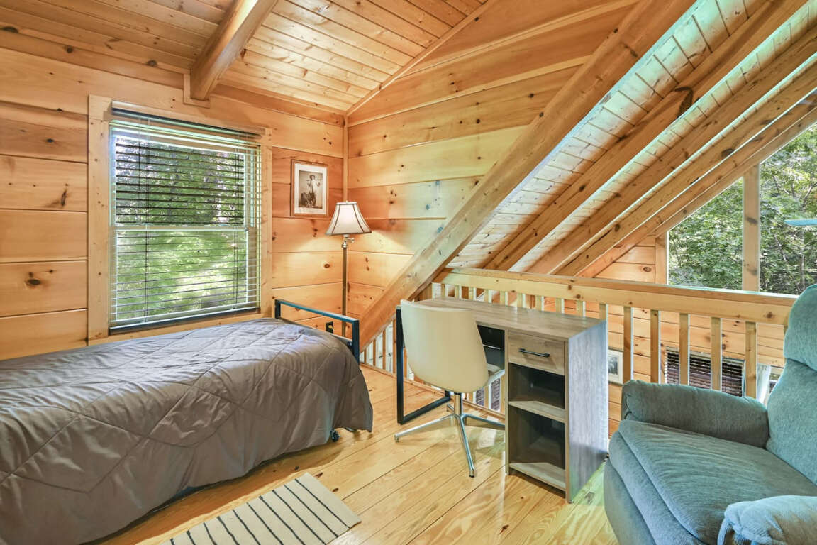 This Lake Lure retreat is perfect for families and groups with space to spread out, a game room with foosball and a poker table, a generous kitchen, family-sized fire place and two decks. Three bedrooms with a queen, full, and twin beds respectively, and a twin with trundle in the office loft offer plenty of options. There's plenty of parking, too, so bring the whole group! This unit is pet friendly with a small non-refundable fee. Lake Lure will be open for swimming & boating after Memorial Day