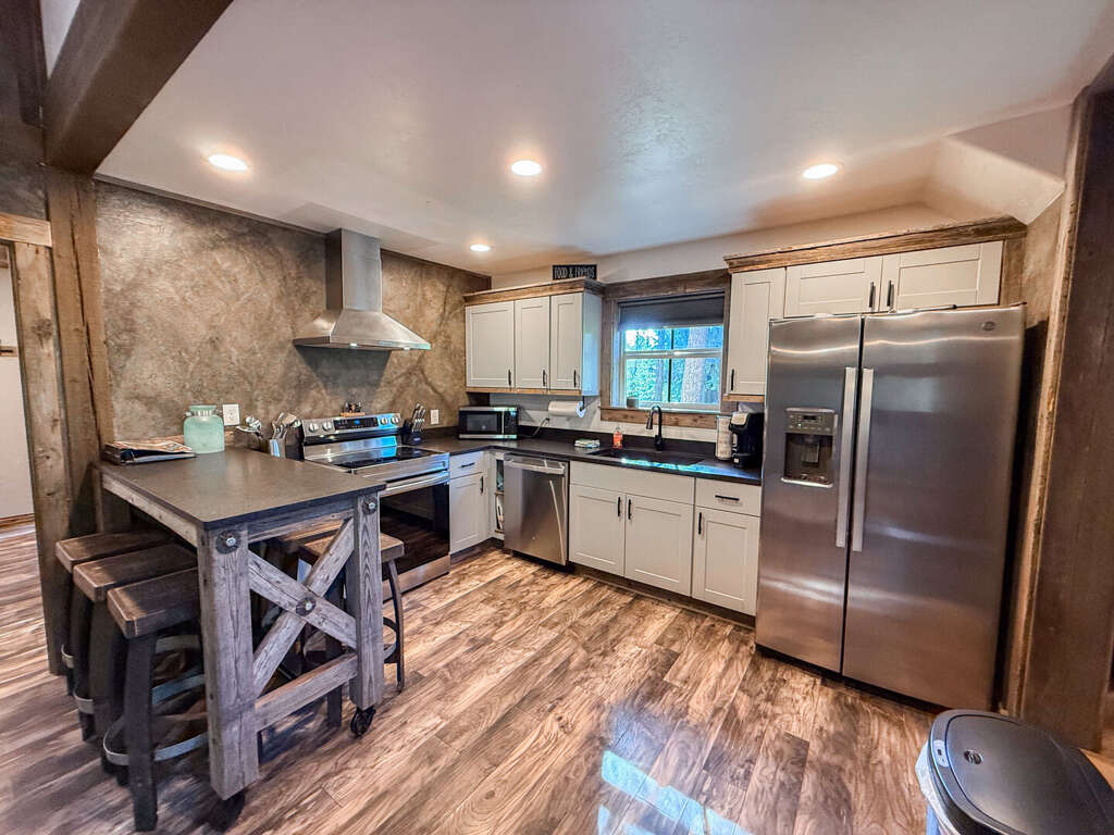 Escape to Bison Ridge Cabin #2, a cozy 3-bedroom, 1.5-bath retreat tucked into the peaceful woods just minutes from downtown Whitefish, Whitefish Mountain Resort, and Glacier National Park. Designed with rustic charm and modern comfort, this cabin along with 4 others is perfect for families, groups of friends, or anyone seeking a relaxing mountain getaway. After a day of exploring northwest Montana’s lakes, trails, and national parks and forests, come home to unwind in your private hot tub, gather around the fire pit under the stars, or grill up a meal on the BBQ. Inside, the cabin offers warm finishes, comfortable furnishings, and plenty of space for up to 8 guests.