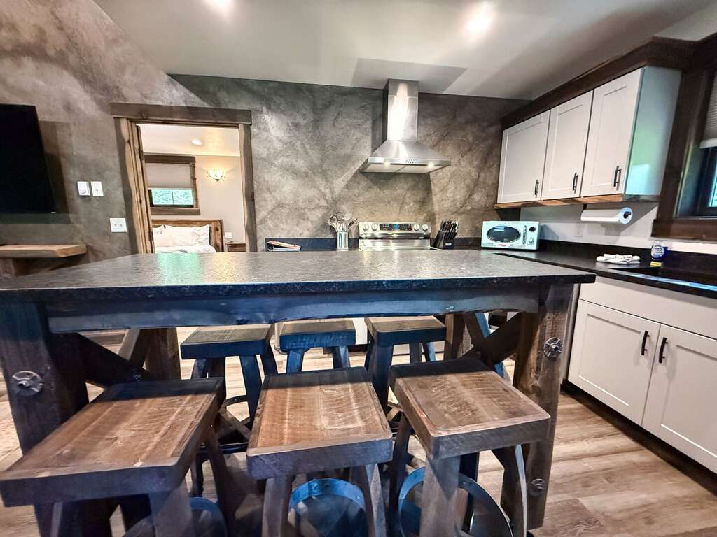 Escape to Bison Ridge Cabin #4, a cozy 4-bedroom, 2-bath retreat tucked into the peaceful woods just minutes from downtown Whitefish, Whitefish Mountain Resort, and Glacier National Park. Designed with rustic charm and modern comfort, this cabin along with 4 others is perfect for families, groups of friends, or anyone seeking a relaxing mountain getaway. After a day of exploring northwest Montana’s lakes, trails, and national parks and forests, come home to unwind in your private hot tub, gather around the fire pit under the stars, or grill up a meal on the BBQ. Inside, the cabin offers warm finishes, comfortable furnishings, and plenty of space for up to 8 guests.