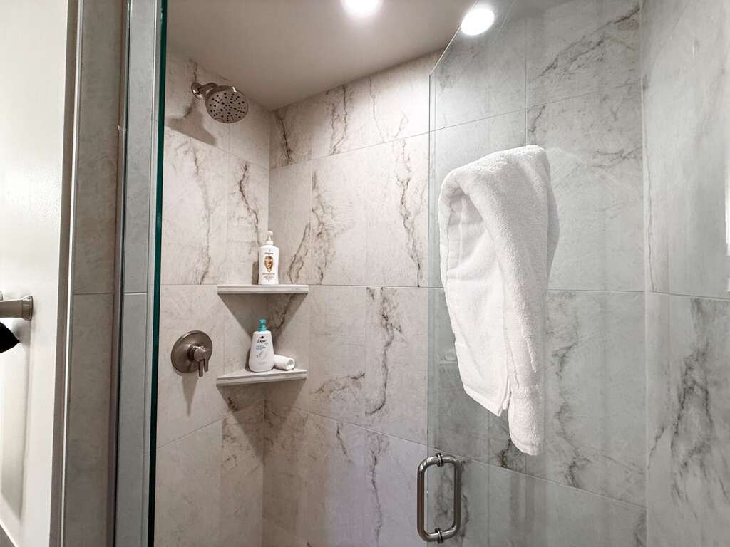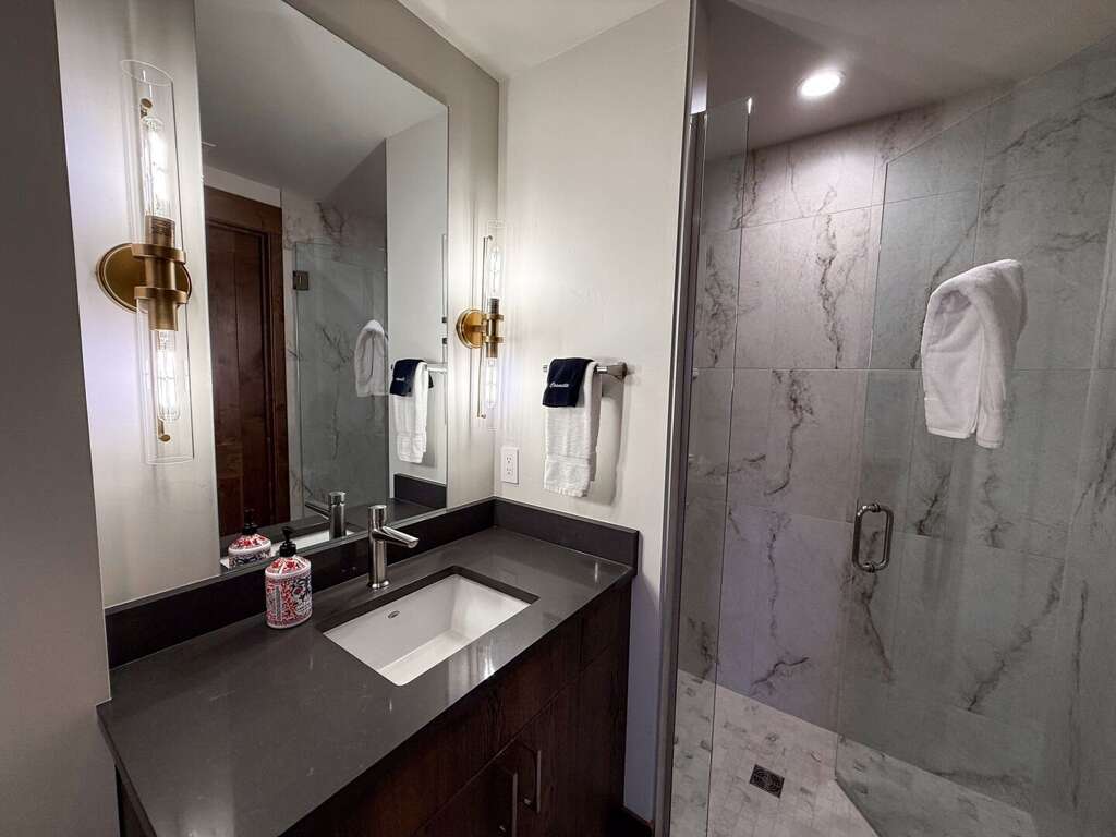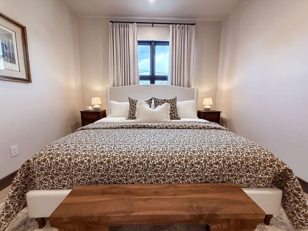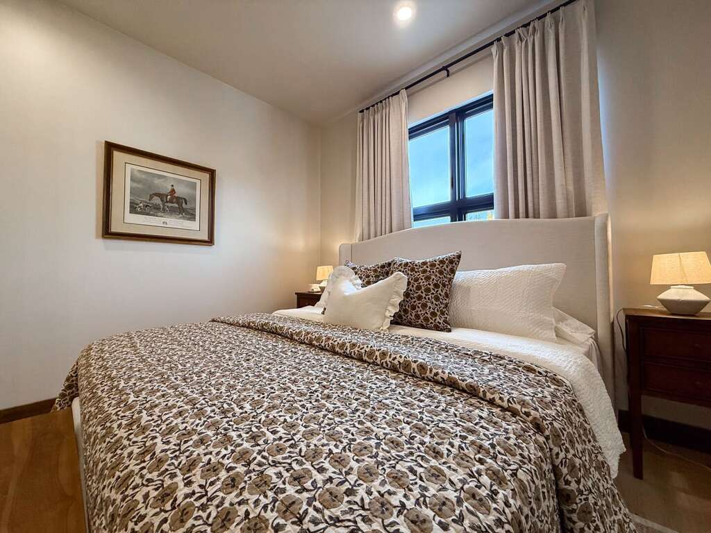 Inside, enjoy an open-concept living space with soaring ceilings, designer furnishings, and floor-to-ceiling windows that fill the condo with natural light. The gourmet kitchen boasts high-end appliances and quartz countertops, perfect for preparing meals at home. Each bedroom offers en-suite bathrooms and plush bedding, with the primary suite featuring a spa-inspired bathroom with a soaking tub and walk-in shower.
