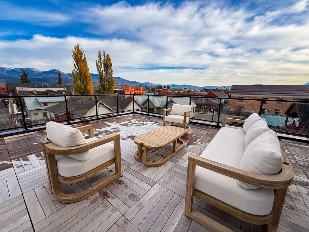 The highlight of the condo is the private rooftop deck, where you can savor morning coffee, sunset cocktails, or stargazing while taking in sweeping views of downtown Whitefish and the surrounding mountains.