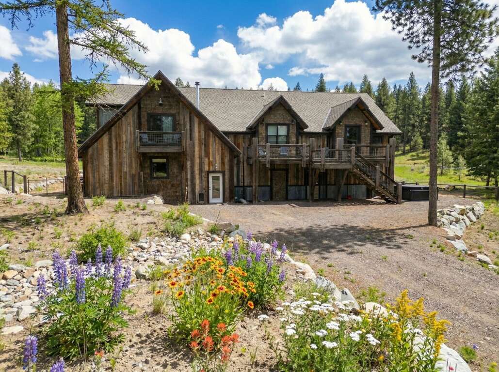 Bison Ridge Lodge, a spacious rental cabin in Whitefish, MT is the perfect place to stay with six bedrooms, a hot tub, and an amazing mountain view.