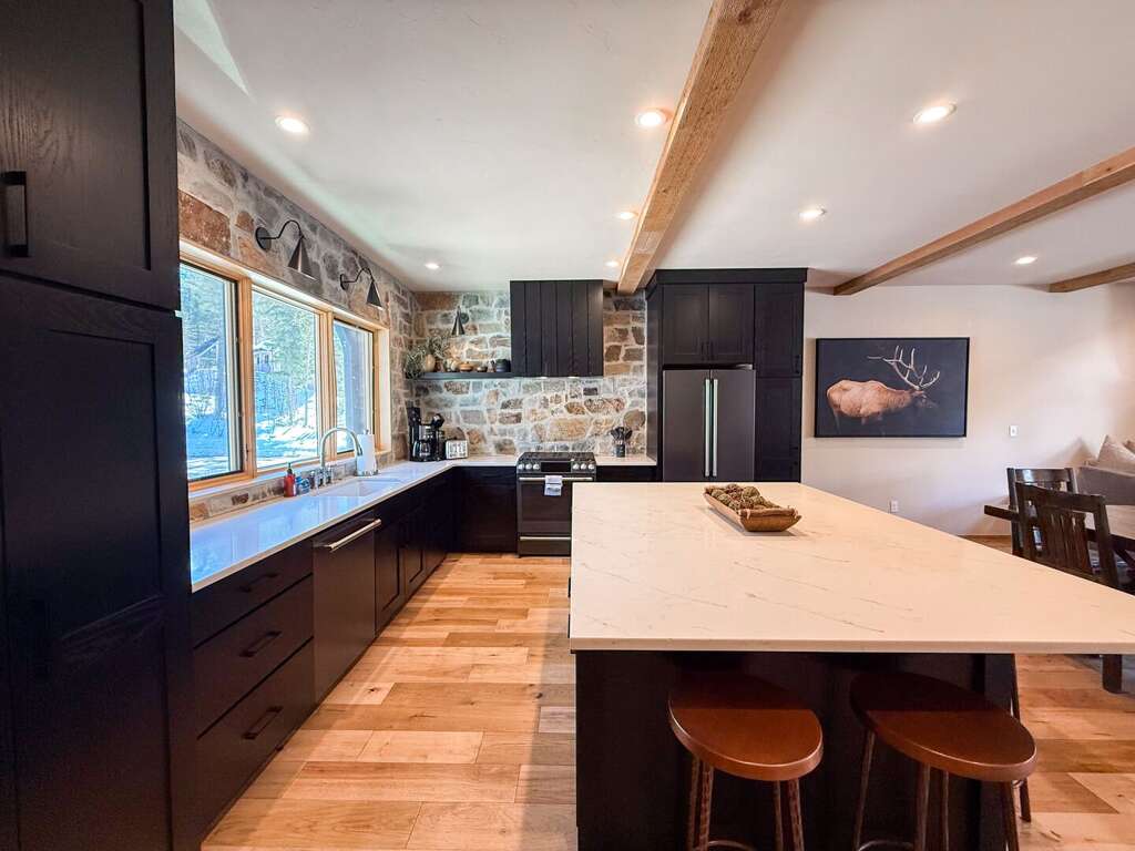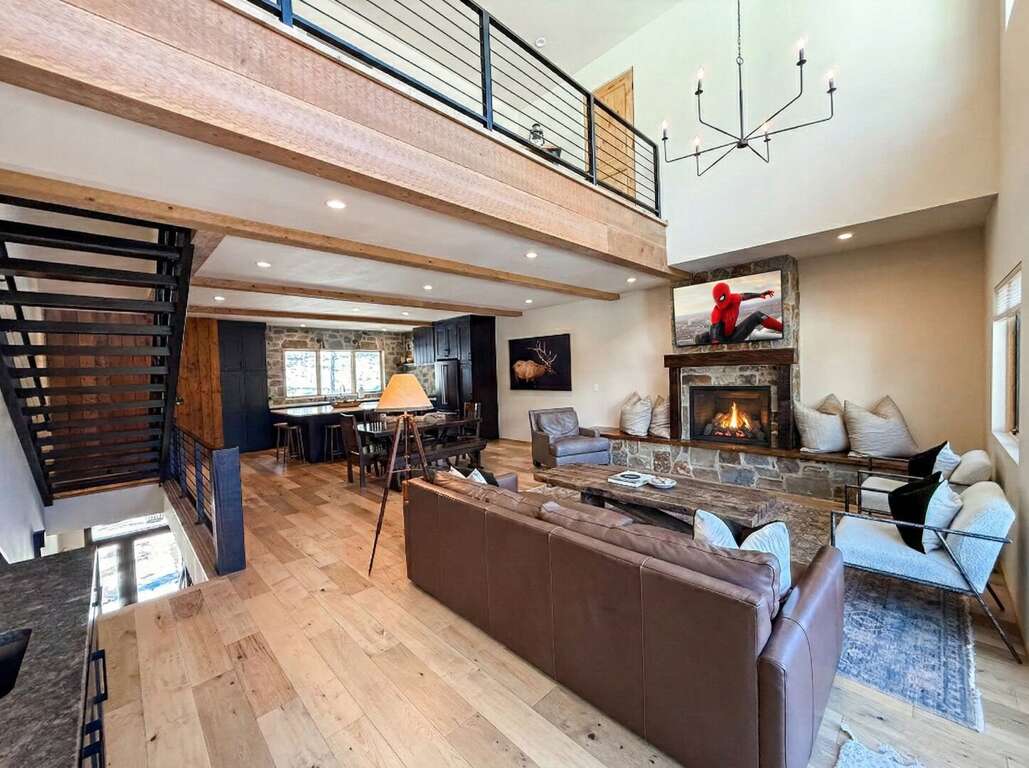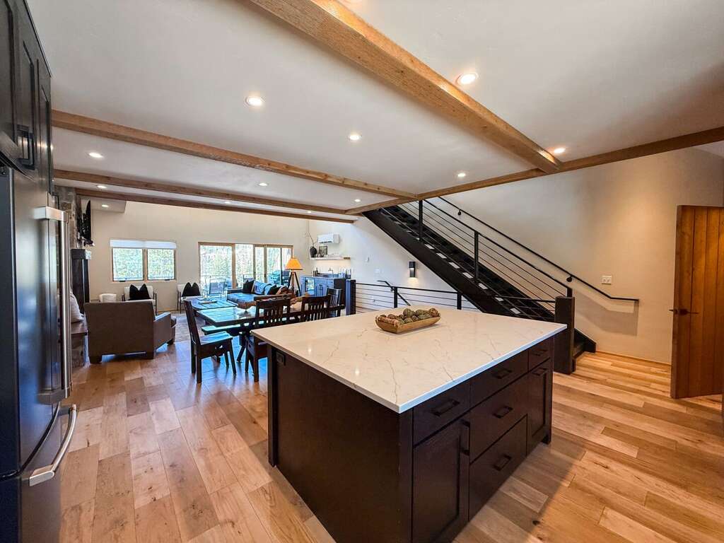 Two gas fireplaces create the perfect mountain ambiance for snowy evenings and relaxed gatherings. The open-concept living area is ideal for sharing meals, playing games, or simply enjoying time together.