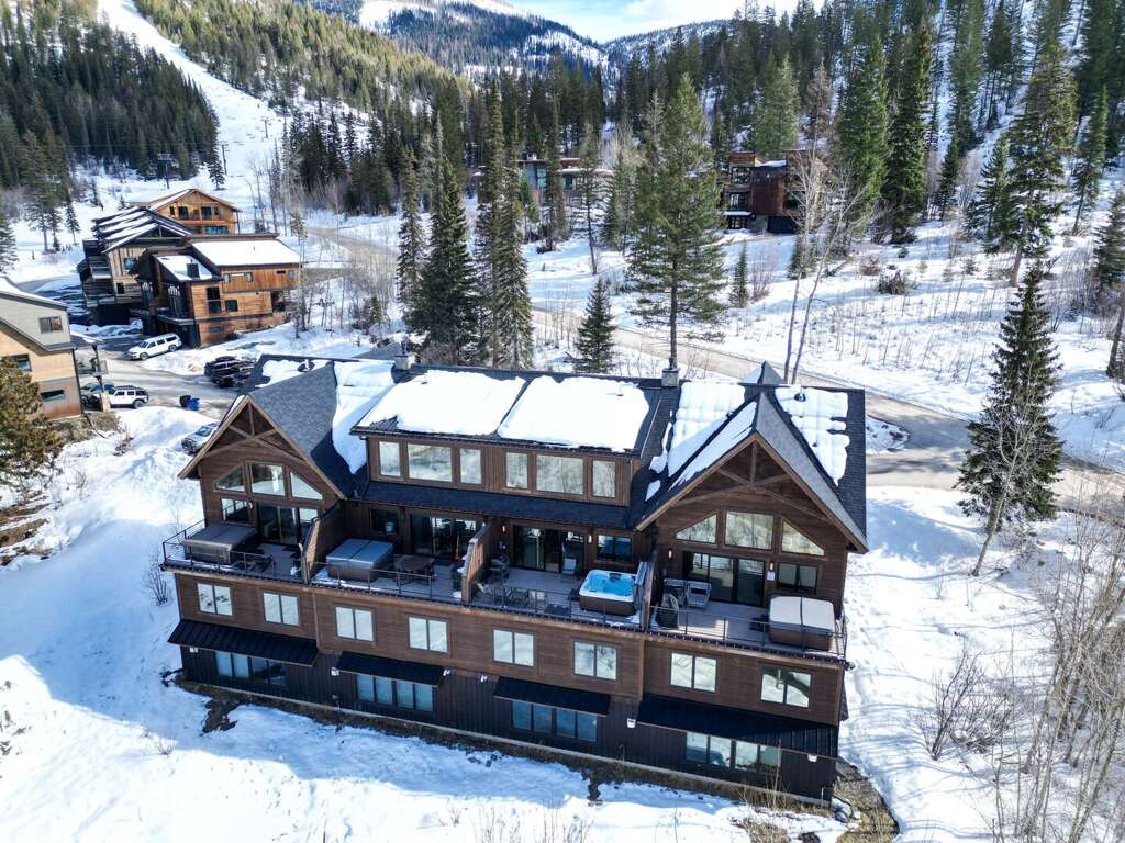 Ski-in/ski-out house on Whitefish Mountain Resort in Whitefish, MT, sleeping up to 12 with a private hot tub, mountain views, and two fireplaces.