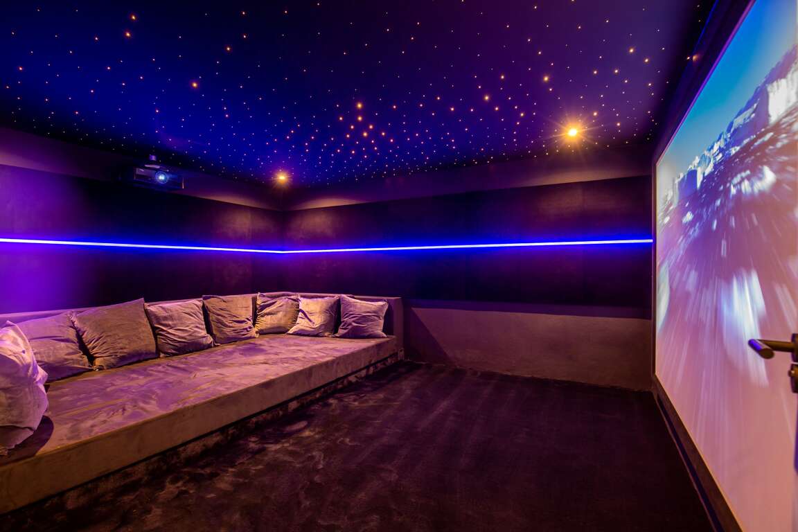 Entertainment & Tech: The lower level boasts an innovative cinema room for private screenings. The entire property is equipped with underfloor heating, air conditioning, and a stylish open fireplace.