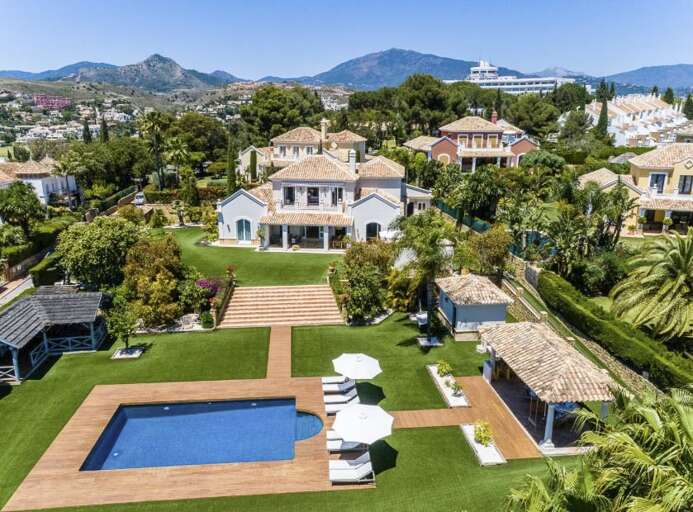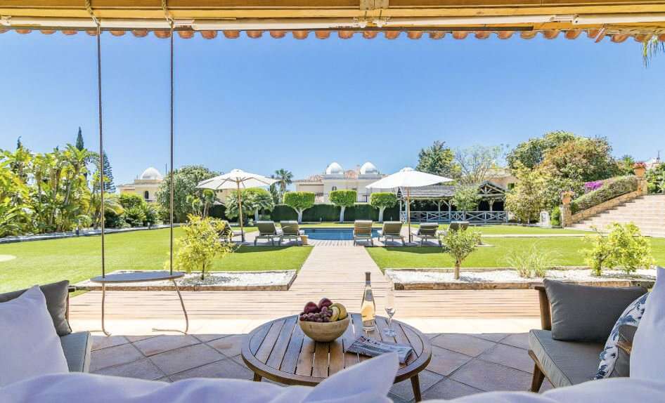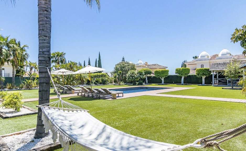 Villa vacation rental in Marbella near Puerto Banús, Málaga, with 5 bedrooms for groups and families, a private pool, landscaped gardens, and easy access to San Pedro beach and the marina.