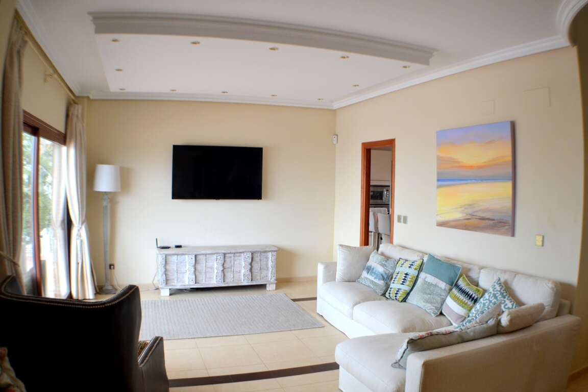 The Living Zones: A large open-plan lounge on the main level and a secondary lounge on the ground floor, both equipped with flat-screen TVs and IPTV.