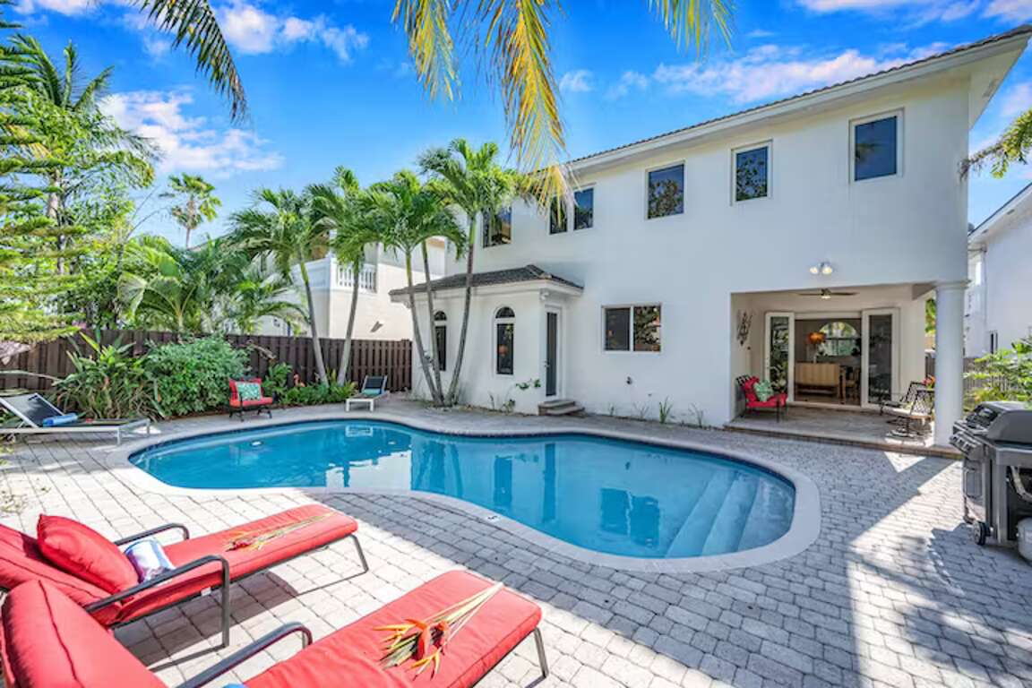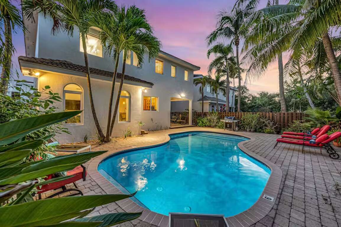 Villa home in Fort Lauderdale for groups, with a heated private pool, games room, and walkable access to dining and Hugh Taylor Birch State Park—an easy beach house rental near the Atlantic.