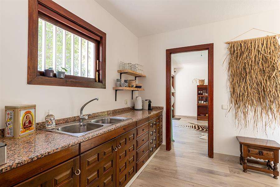 Kitchens: Two fully equipped cooking areas. The main kitchen features an induction cooker, microwave, dishwasher, refrigerator-freezer, coffee machine, kettle, and toaster. A secondary kitchen includes an electric hob and refrigerator.