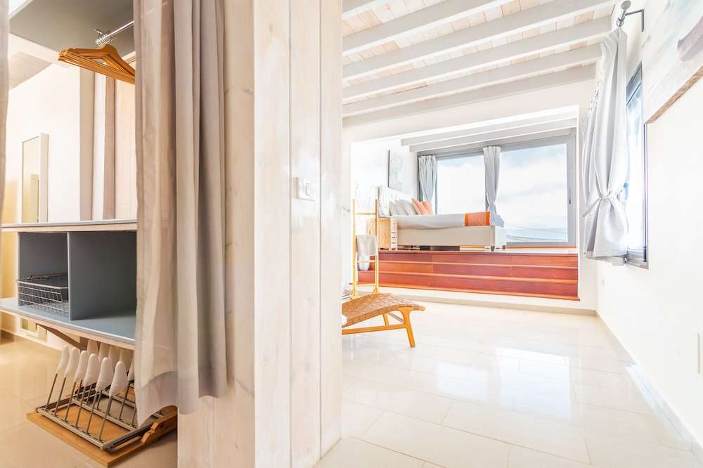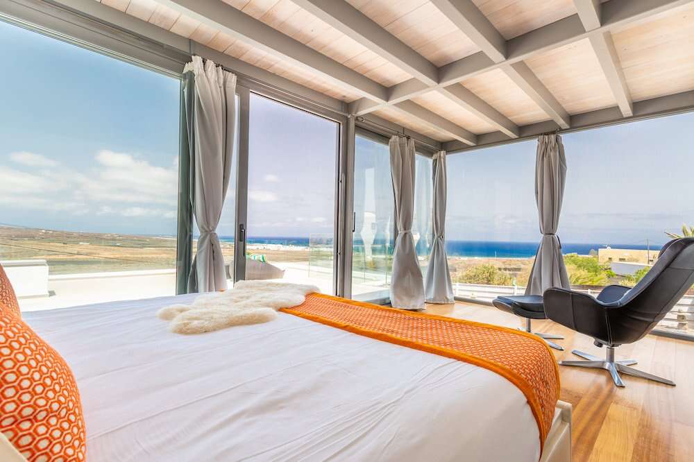 The Pool Area: An 8m x 4m solar-heated swimming pool ($1.6m$ depth) surrounded by a lava-decked terrace and a covered "chill-out" zone with uninterrupted sea views.