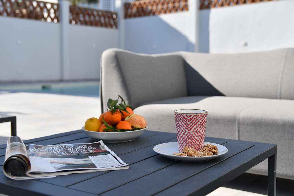 The Pool & Garden: A south-facing 8m x 4m private pool ensures sun all day long. The area is furnished with sun loungers and a large lounge bed for ultimate relaxation.