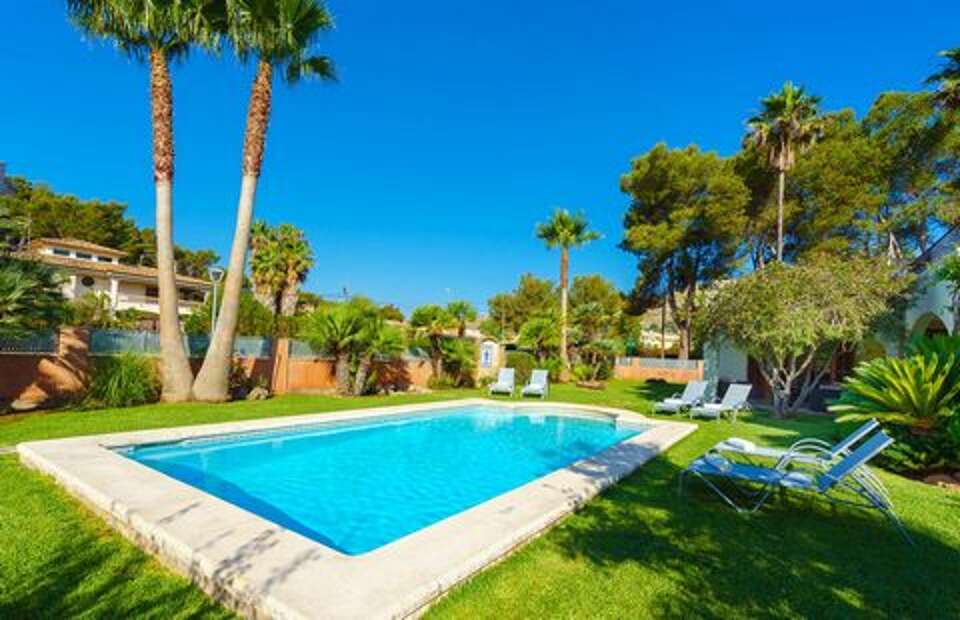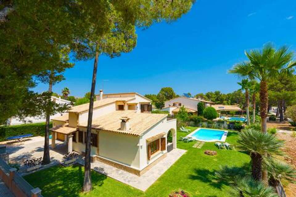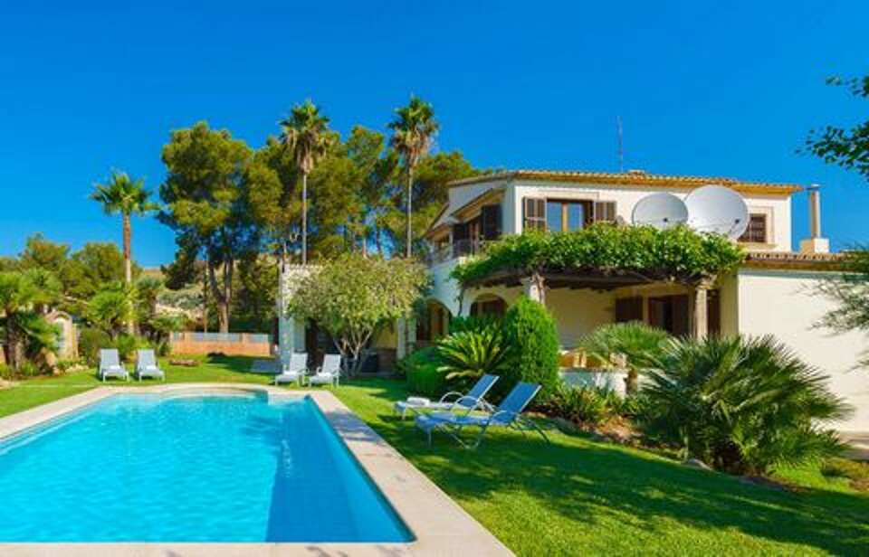 Villa vacation rental in Puerto Pollensa with 3 bedrooms, private pool, and Mediterranean gardens in the Gotmar area—an easy place to stay near cafés, restaurants, and the beach promenade, about 700 m away.