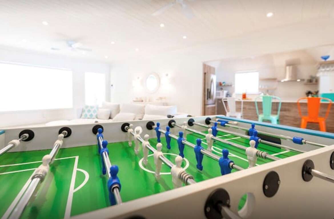 Heated Pool & Leisure: An 8x4 m private pool with electric heating, surrounded by a garden featuring ping pong, table football (babyfoot), and a rowing machine for the fitness-conscious.