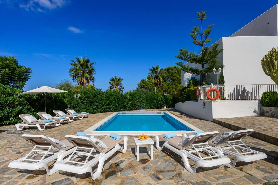 The villa is a strategic base for beach lovers, located near some of the island's most famous coves:
