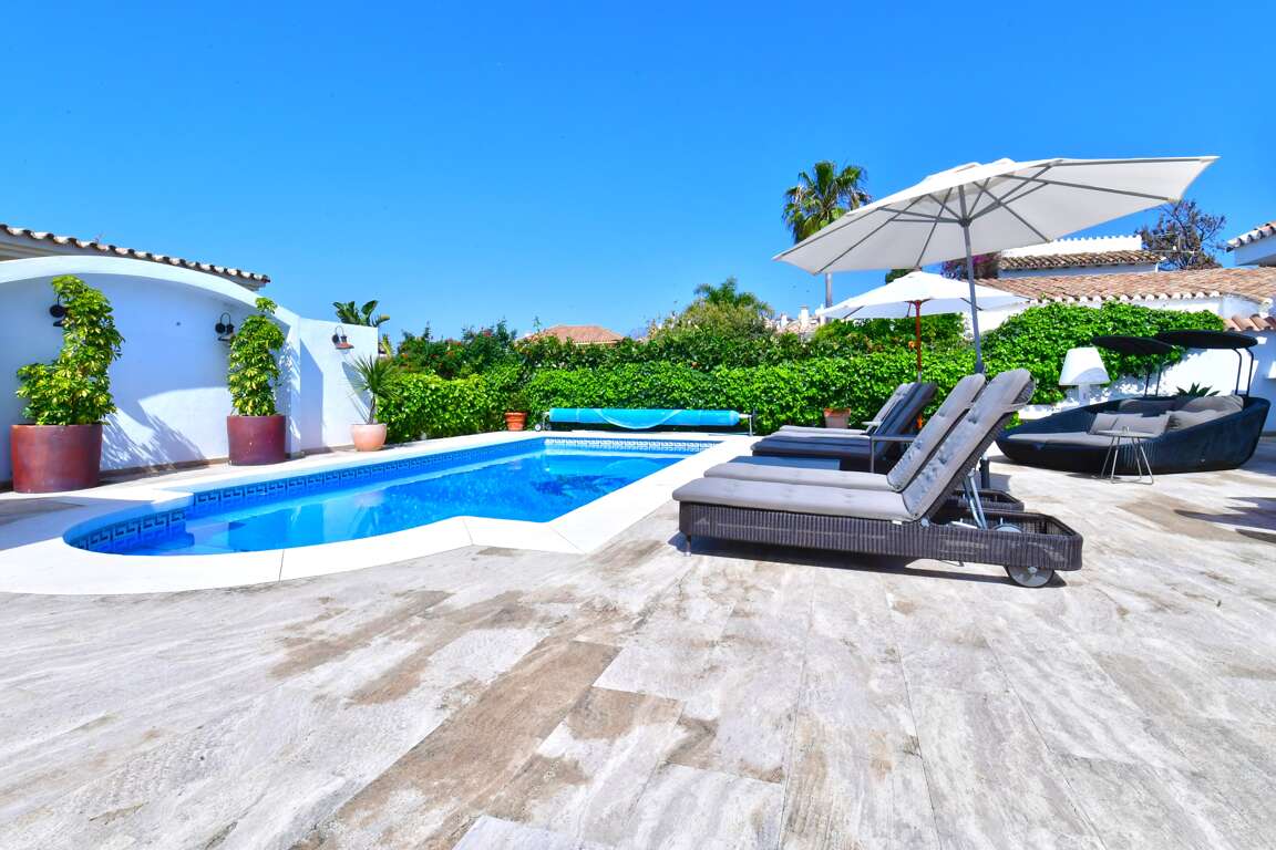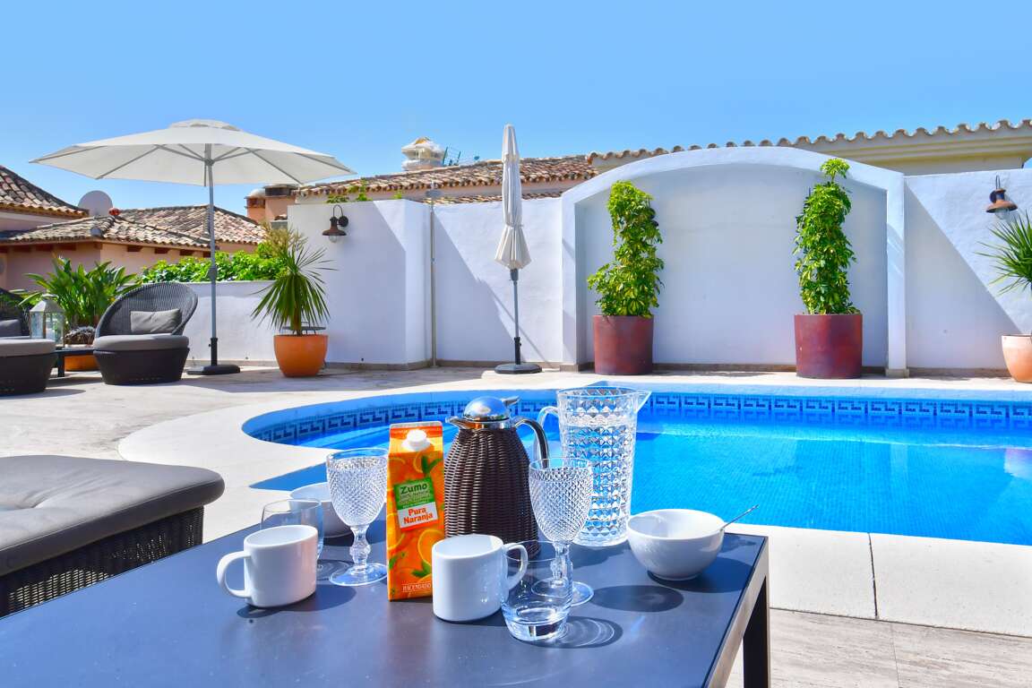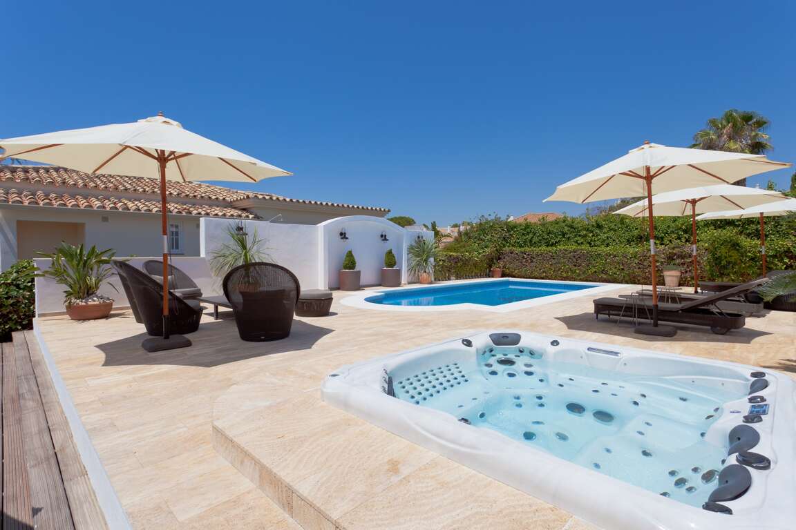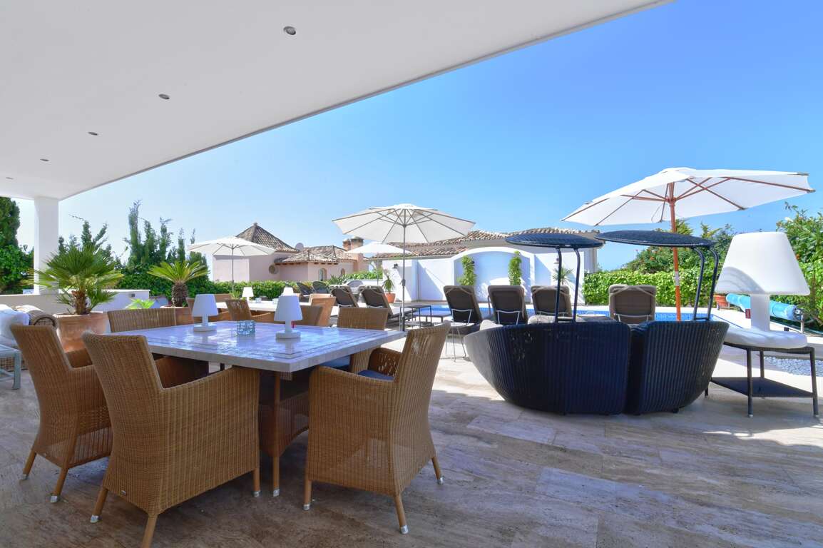 Villa vacation rental in Marbella with 6 bedrooms for groups, featuring a heated pool, jacuzzi, and large sea-view terraces on a private fenced plot near El Rosario and Puerto Banús.