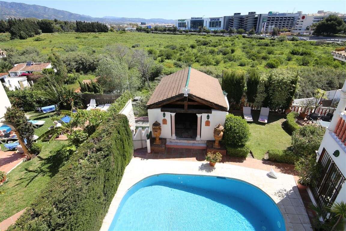 Villa vacation rental in Marbella near Puerto Banús, with 5 bedrooms for groups and a private pool plus covered pavilion; walk to La Sala, shops, and the port, with the nearest sandy beach about 700m away.