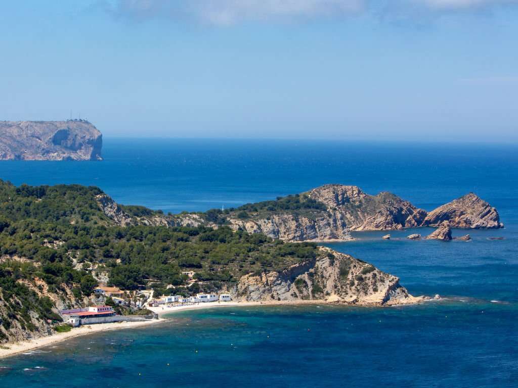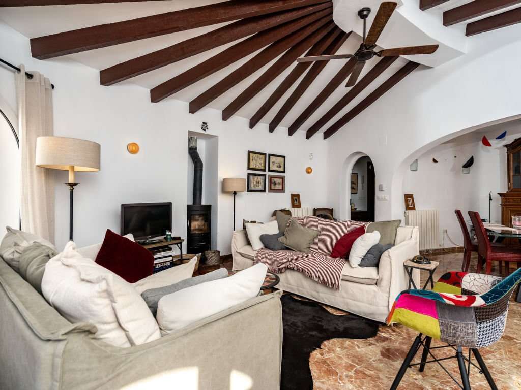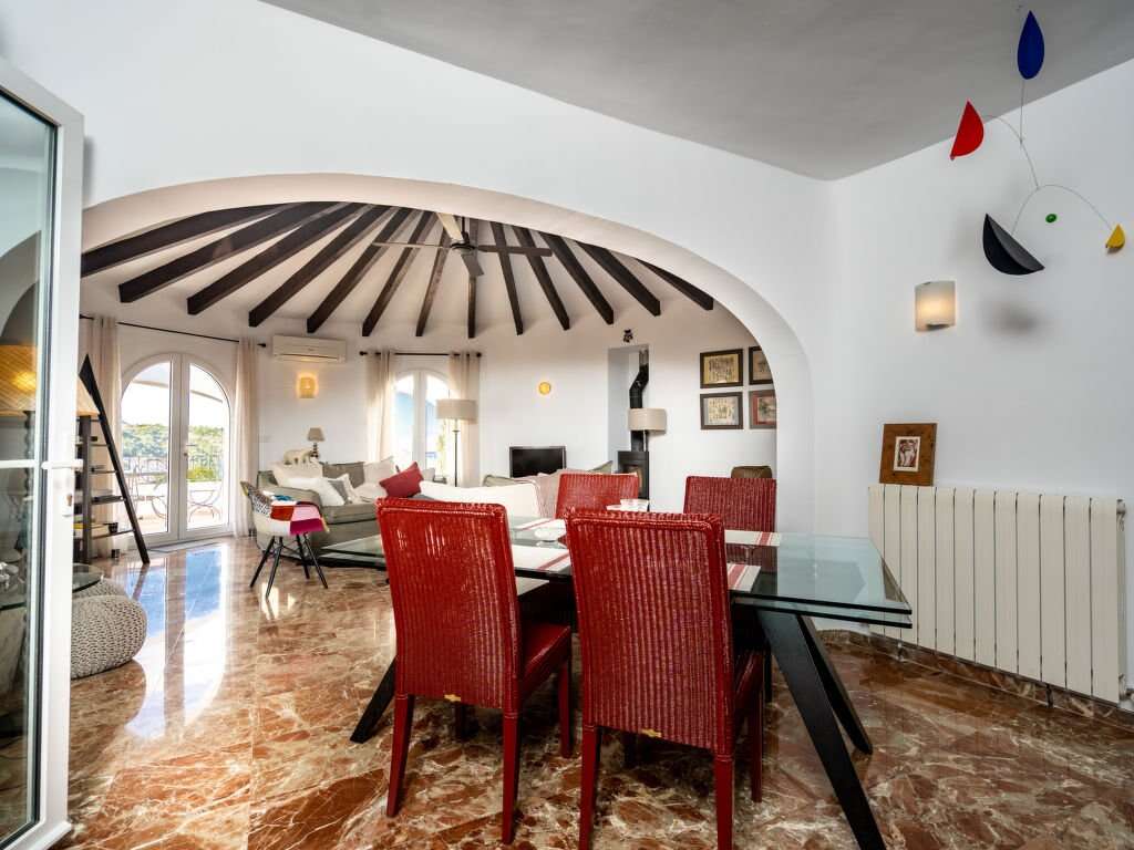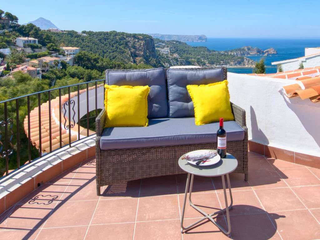 Mediterranean villa vacation rental in Xabia with 4 bedrooms for groups, set on a fenced plot with sea views, a private pool, and quick access to La Barraca and El Arenal beaches.