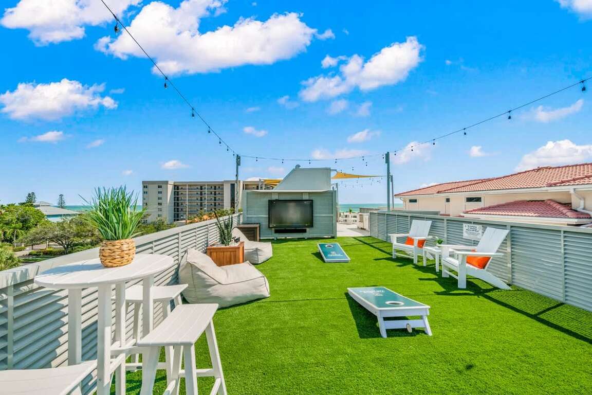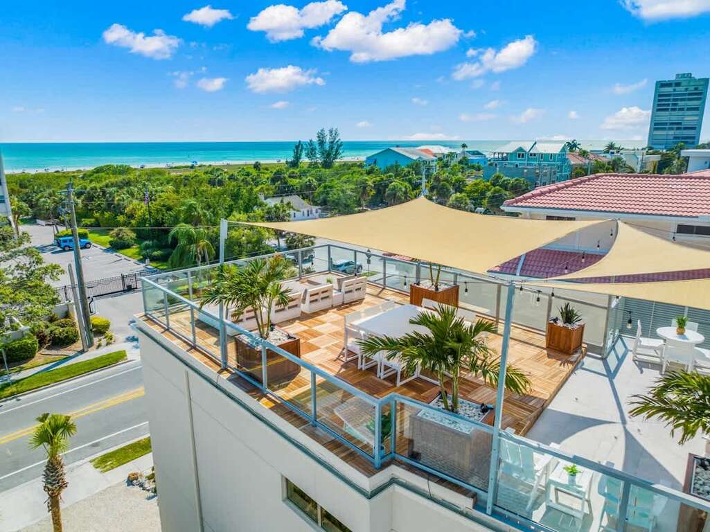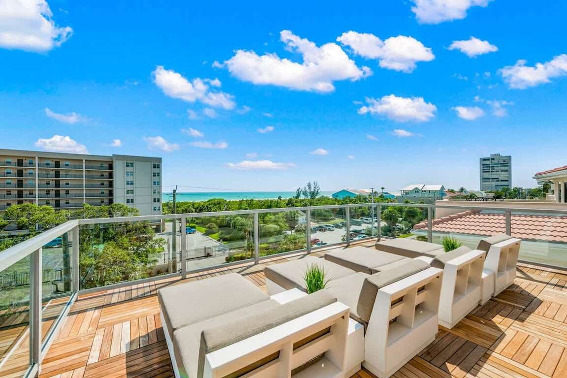 Siesta Key Luxury Rental w/ Gulf Views & Resort Style Pool with Spa, Entertainment Roof Deck 3,800+ Square Feet of interior Living SpacePatios, balconies and roof top decks with 2,800 square feet of entertaining space. Spectacular Gulf views from multiple levels + Roof Top Deck/Entertainment Space Private Heated Pool with Waterslide. 2 Sun shelves/Splash Zones, 6-person Spa. Covered and Open-Air Patio. Tropical Landscaping. 6 Bedrooms and 6 Baths with 1 Master Bedroom with Balcony Access Sleeps 14: Five King Beds and one Bunk Bed Set. Enjoy the Gulf Views from the Entertainment Rooftop Deck Enjoy Free WiFi, Smart Televisions, Nintendo, Play Station 4, Ping Pong and Cornhole Free parking: Maximum 5 cars; Do not block the sidewalk Dedicated WorkspacePet Friendly – Inquire for more details and feesElevator Available to All FloorsTons of Amenities Included: Bikes, Beach Chairs Beach Cart, Deep Freezer, and More Property Manager Program: Experience the Vunique Vacations difference All Linens & Towels Included in Professional Linen Program Discounts from Preferred Vendors on Equipment, Tours and Services For an additional fee, you can request for an extended stay, mid-stay, and daily housekeeping. Easy Access to City Trolley & Free Shuttle Services Accessibility: Elevator access, most doorways are 30 inches wide or larger. Walk-in showers available in Bath 1, 2, 3, 4 & 5. See the photos, 3D tour, and video for this home