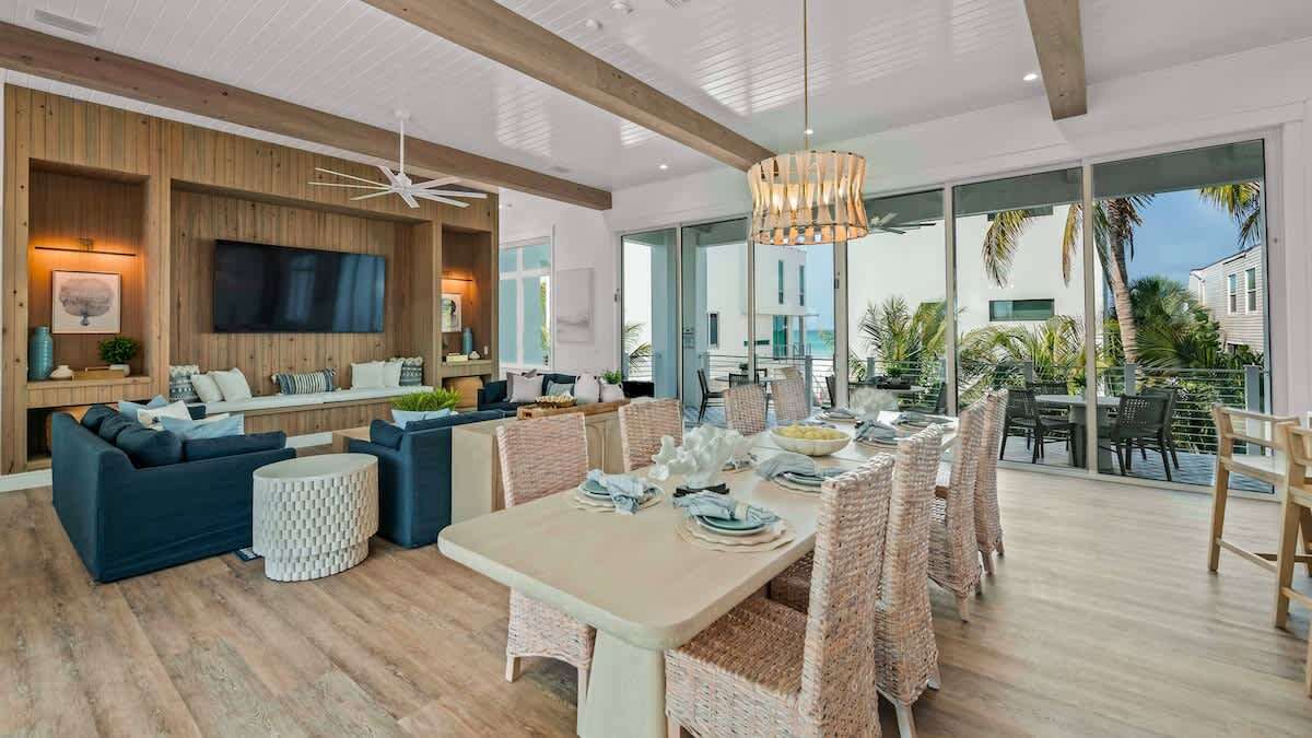 Discover the ultimate Siesta Key getaway at Sandbar Social, a magnificent 7-bedroom vacation rental offering pet-friendly accommodations and a private pool. Unwind in style!