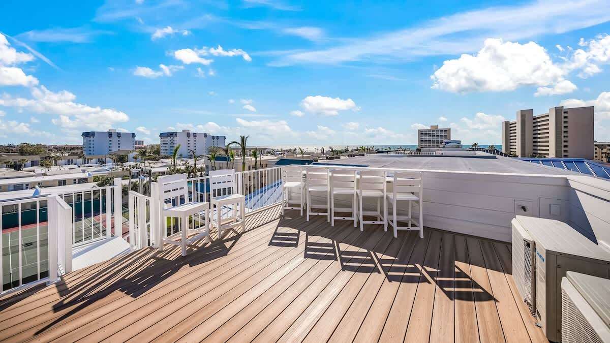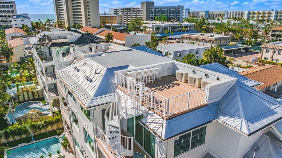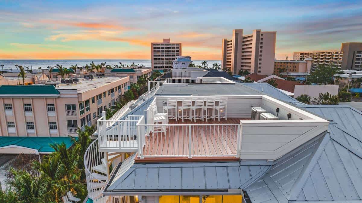 Master bedroom 1 has Gulf views, balcony access, walk in closet, and a large en suite bathroom with 2 vanities, walk-in double shower, freestanding bathtub, and private water closet. The club room has a wet bar, seating, and games (Nintendo, PlayStation, air hockey and wall Scrabble). The bar has a sink, beverage and wine refrigerators, ice maker, and trash pull-out. It also has a half bath, and a balcony with stair access to the roof top deck (both with Gulf views). The rooftop deck is perfect for enjoying sunrise or sunset. So, be sure to grab a book, a coffee or cocktail, and enjoy the sea breeze and Florida sun from this amazing elevated outdoor living space that overlooks all of Siesta Key. These are great indoor and outdoor entertainment spaces!