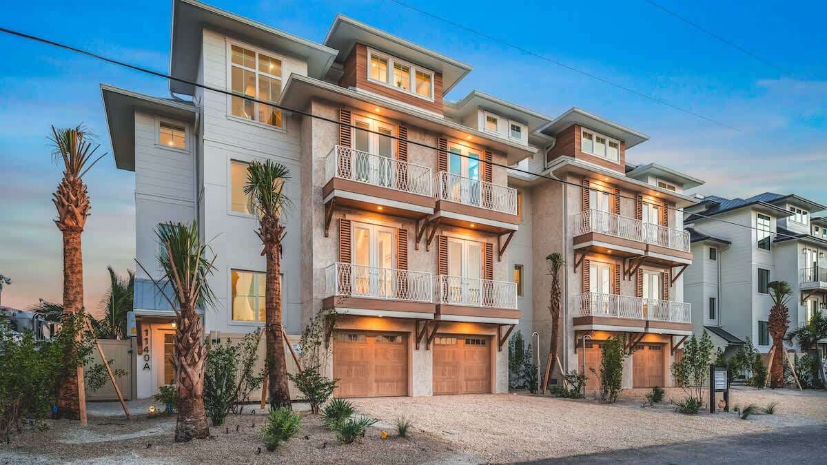 This nearly 3,600 square foot home provides views and balconies on all levels, including the rooftop deck that is over 50 feet above the ground. This home has an elevator with service to all floors (except the rooftop). This home has 5 bedrooms (all with en suite baths and balcony access); and 5 full baths and 2 half baths. There are 4 king beds and 2 custom Queen over Queen bunk beds. The home comfortably sleeps 14 people in beds. The great room is family friendly and includes the kitchen, living, dining areas, and balcony. The kitchen is fully stocked, and we mean that because we know how important it is to you, our valued guests! Not only is it stocked, but itās also stocked with the products and manufacturers you trust. This home also has a club room with multiple games, bar area, and a balcony with seating that provides access to the homeās 50-foot-high rooftop deck!