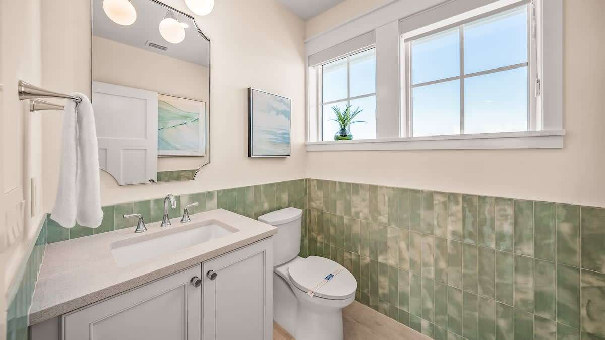 The great room has a fully stocked kitchen with a large pantry, cooktop with hood vent, double ovens (2), full sized refrigerator (w/ ice maker) and freezer, trash/recycling pull-outs, 2 dishwashers, microwave, toaster, coffee maker, and is very well appointed with cookware, bakeware, dishware, cutlery, and specialty items like crockpots, blenders, and more. If you have any questions on kitchen supplies, our reservationists would be happy to provide more details. The living area is very comfortable and the dining area here seats 14 people comfortably via a 8-person dining table, 6-person kitchen bar top. Master bedroom 2 has double āJuliet balconiesā, a king bed, and an en suite bathroom with double faucet vanity and walk-in shower. There is a half bath on this floor.