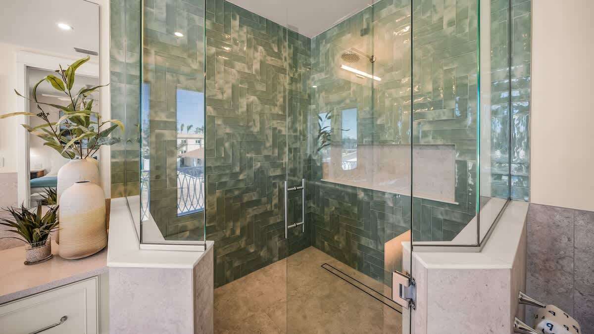 The top floor in each home blends luxurious sleeping quarters with elevated entertainment spaces. Each home’s Master Bedroom 1 is a sanctuary of comfort and style. In Home A, the suite includes a king bed, Gulf views, walk-in closet, balcony access, and a stunning en suite bathroom with dual vanities, a freestanding soaking tub, walk-in double shower, and a private water closet.