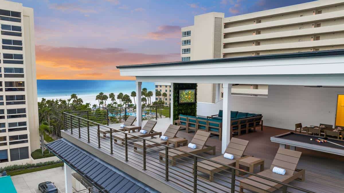 Vunique Vacations was built for the discerning traveler who’s seeking a truly unforgettable experience! Each home is thoughtfully designed down to the last detail, with you–our guest–in mind. Our team delivers service that’s every bit as impressive as our luxury vacation homes, with a consistent, personalized touch from start to finish. No hidden fees, just transparent pricing and advertising. The result? Unmatched value for travelers who expect more from their getaway. Welcome to Over the Top, a striking beachfront vacation home that seamlessly blends thoughtful design, high-end amenities, and luxurious comfort across multiple levels of extraordinary living spaces. This beachfront vacation home embodies the elevated lifestyle that guests have come to expect from Vunique Vacations with nearly 5,000 square feet of interior living space, over 3,000 square feet of covered patios and balconies including the best rooftop space on Siesta Key, expansive Gulf views and elevator access on all levels, 8-bedrooms each with en suite baths, private beach access, a resort style pool with multiple water slides, a sport court, movie room, and so much more. Did we mention that this home showcases gulf views from every bedroom, common space, and balcony! https://www.youtube.com/watch?v=531QR45vwZU https://my.matterport.com/show/?m=6VmJENEyqwM The home is conveniently located to everything on Siesta Key. If you want to explore further without the hassle of driving, you'll find multiple stops nearby for the free trolley that provides transportation service to the entirety of Siesta Key. You're also just a quick drive or Uber/Lyft to the mainland Sarasota area (5 minutes) and downtown Sarasota (20-25 min) for access to the Sarasota's Performing Arts scene, and numerous fantastic restaurants, shops, marinas, bars and entertainment, grocers, and more. And, day trips to Lido Key, Anna Maria Island, Venice Beach, Myakka State Park and so much more are all less than an hour away, as well as the amazing theme parks of Tampa and Orlando that are all just 1-2 hours away! So, whether you're relaxing poolside, entertaining on the rooftop deck, hosting friends and family, or planning a day trip or getting out on the town, this estate promises a vacation experience like no other. This home provides private beach access. Access to the private beach is controlled. Please accurately list the number of travelers associated with your reservation, and our team will contact you and walk you through the easy to follow private beach rules. Personal service and attention to detail define the Vunique Difference. We want your vacation to fit your schedule, which is why we offer flexible bookings starting at just 3 nights for most of the year and any-day arrivals. Our homes are spacious and thoughtfully designed, made for connection as much as comfort. Here, luxury isn’t an upgrade – it’s the standard. Within our portfolio of branded residences, you have every amenity that you need for an unforgettable stay - waterslides, movie rooms, resort-style pools, sport courts, golf simulators, climbing walls, putt-putt courses, zip lines, gaming systems, rooftop decks, biked and beach equipment and more. Our proactive maintenance team ensures everything is in top shape before your arrival, and each property has a dedicated manager who welcomes you personally and stays available throughout your stay should you need anything. Transparency is at the core of everything we do. What you see is what you pay – no hidden fees for pool heat (up to 86 degrees), bikes, propane, or any of the extras that should already be included. Why settle, when you can stay somewhere extraordinary?