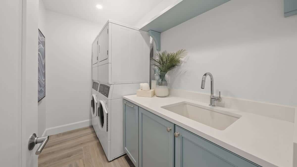 On this level you’ll find the second club room with soft seating, media center, and a wet bar with beverage refrigerator (ice maker) and trash-recycling pull-out. There are also 3 bedrooms on this level (Bedrooms 6-8). Bedroom 6 is the home’s master bedroom. It has a king bed, walk-in closet, and an en suite bath that includes 2 vanities plus makeup vanity, a large shower with free-standing bathtub, and private water closet. Bedroom 7 is another king suite that features a king bed, walk-in closet, and an en suite bathroom with double faucet trough sink vanity and walk-in shower. Bedroom 8 is the home’s bunk room featuring a king bed, queen bed, and 2 sets of custom-built twin bunk beds. It’s such a unique room and it’s designed to suit all types of group and family dynamics! It has a closet, 2 TVs, and an en suite bathroom with a large vanity with double faucet trough sink, and a shower/bathtub combination. There is also a half bath and a second laundry room with sink and stackable washer/dryer units on this level.