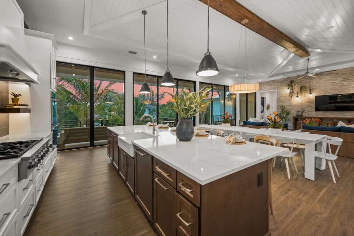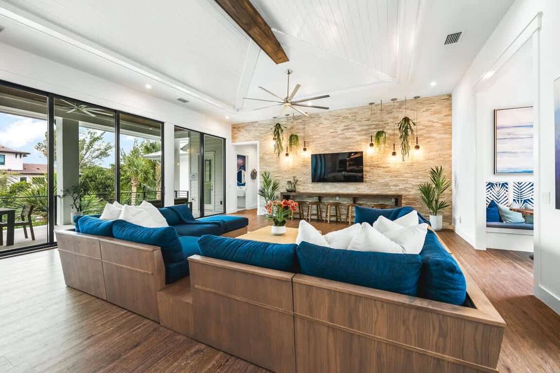 Combined, these homes offer over 8,400 square feet of interior living space, 13 bedrooms, 13 full bathrooms, and 3 half bathrooms. You'll enjoy a total of 11 king bedrooms and 2 custom bunk rooms, one with full-over-queen bunks and another with queen-over-queen bunks comfortably sleeping up to 37 guests in beds. Each home’s great room blends luxury and comfort with fully stocked kitchens, expansive living areas, and generous dining space. Multiple balconies offer serene views of grandfather oaks or Sabal Lake. Both homes feature club rooms with large projection/movie/gaming screens, tiered theater seating, and gaming systems including Nintendo and PlayStation. The upper-level club room in 6536 opens to a rooftop deck with panoramic views—ideal for sunrise coffees and sunset cocktails.