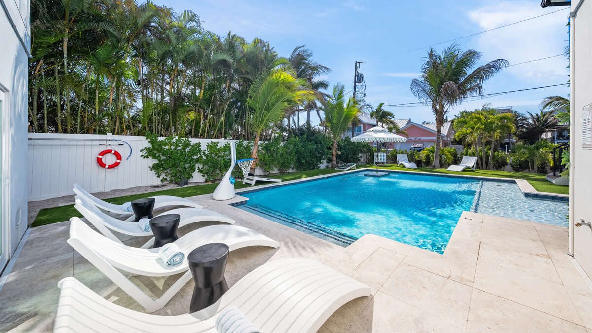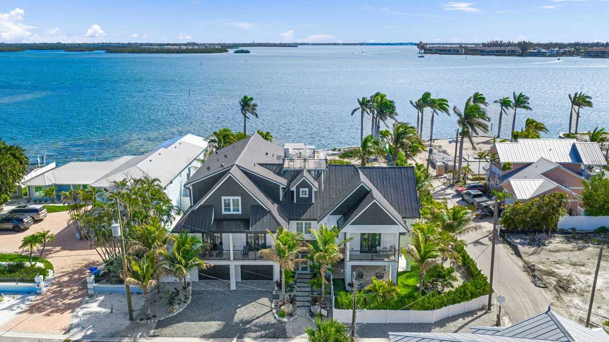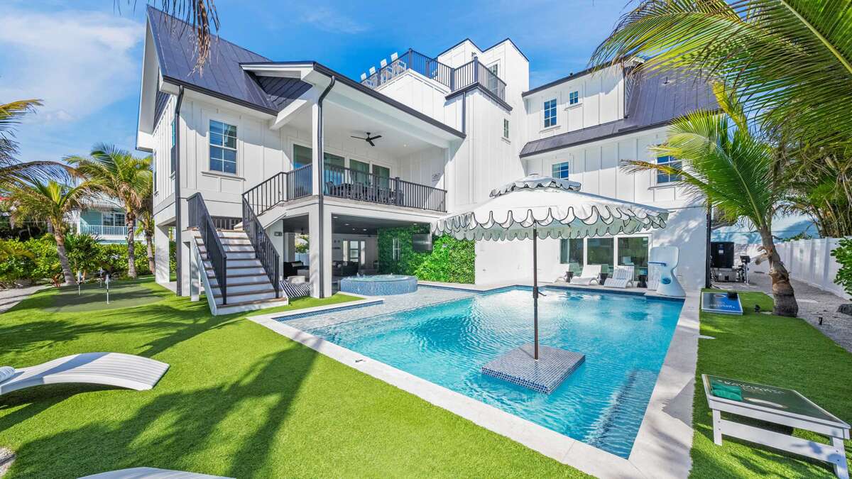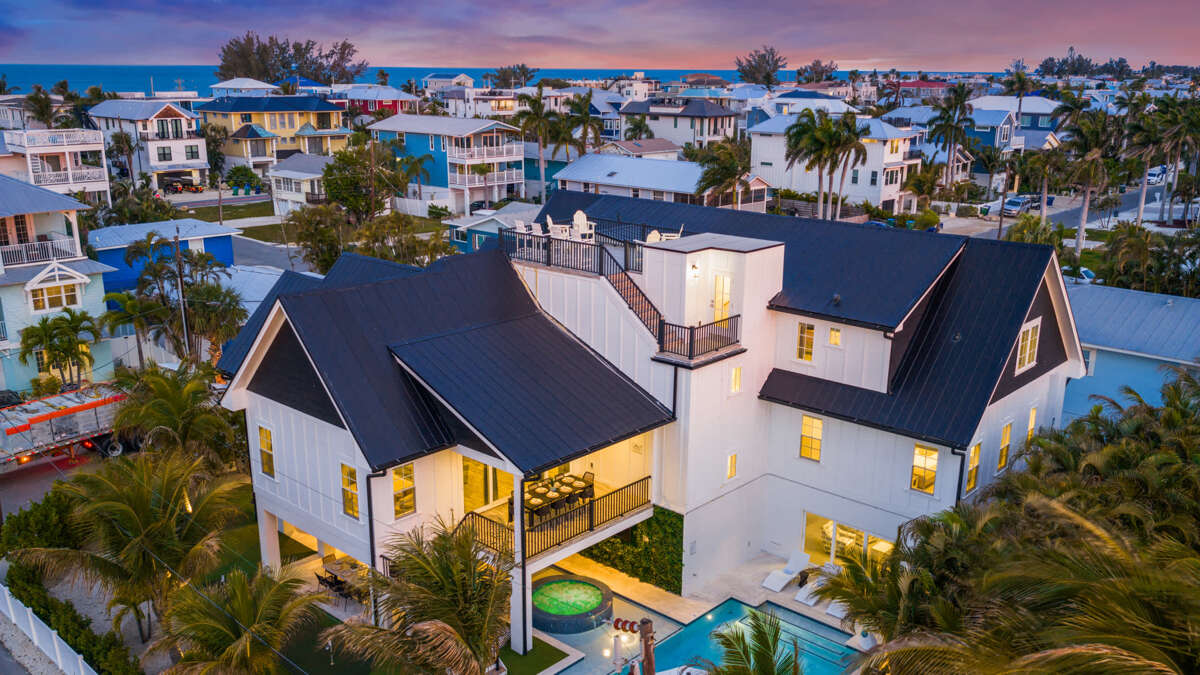 Large house in Bradenton Beach with 10 bedrooms, heated pool and spa, rooftop deck, and bay views, plus easy access to Bridge Street dining.