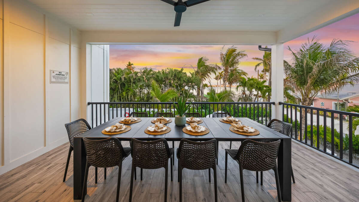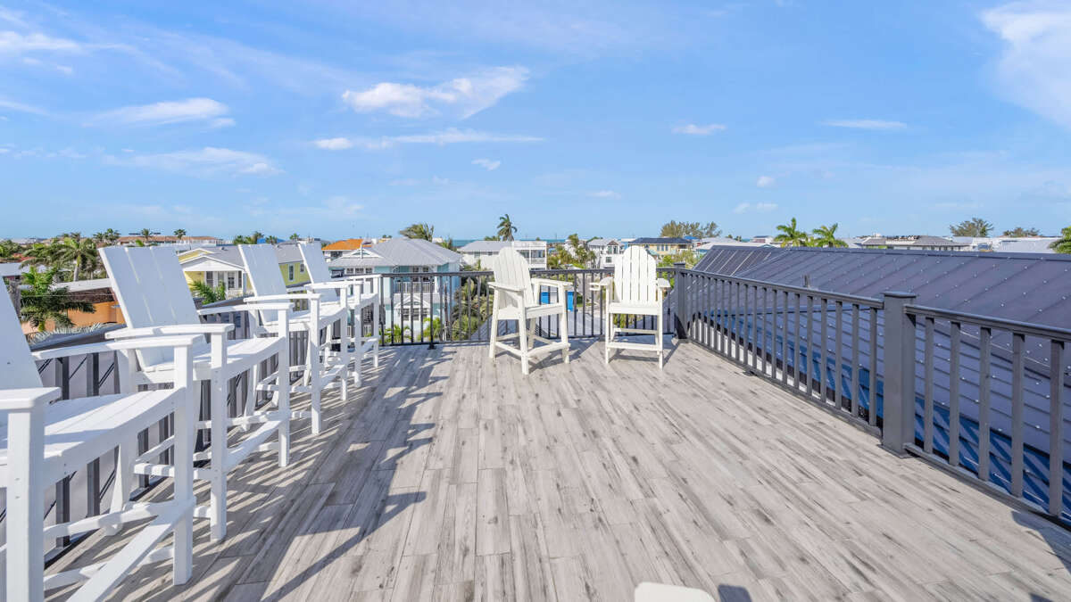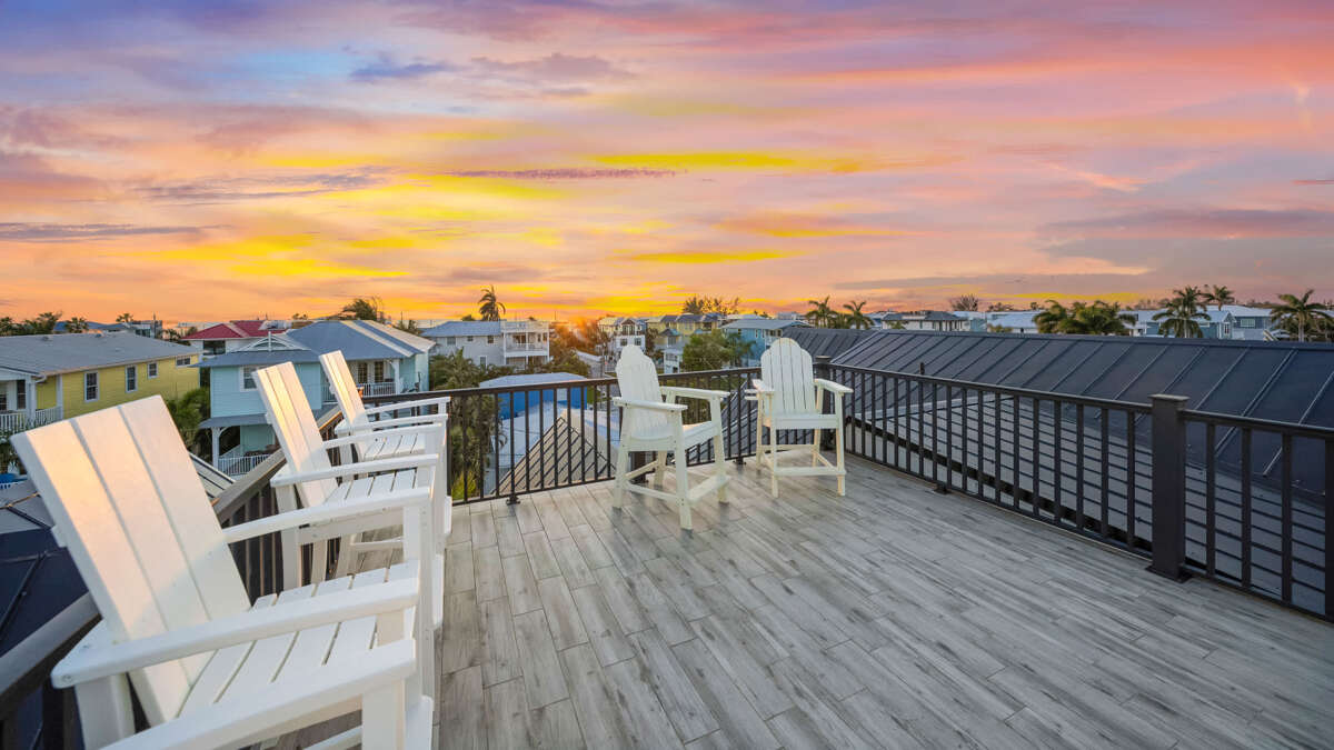 This rooftop space provides seating to relax and take in the views. True to the home's name, Sunset Sunrise offers the perfect vantage point to enjoy sunrise over the bay and sunset over the Gulf of Mexico. So, be sure to grab a book, a coffee or cocktail, and enjoy the sea breeze and Florida sun from this perch overlooking Anna Maria Island and the surrounding waters.