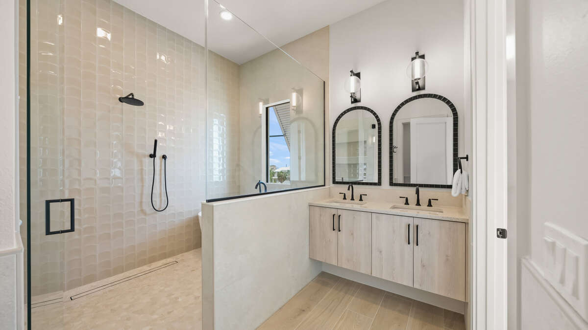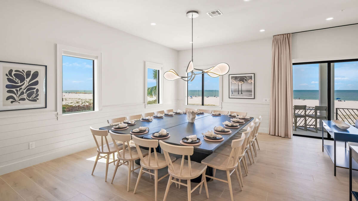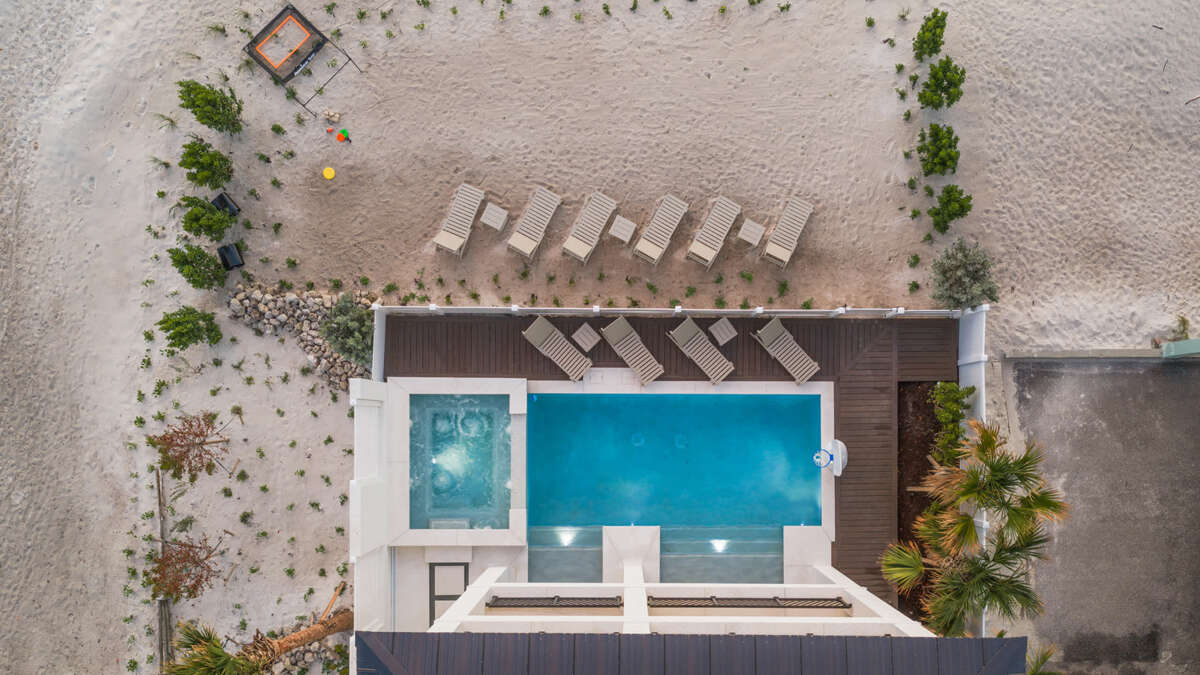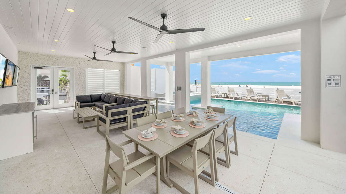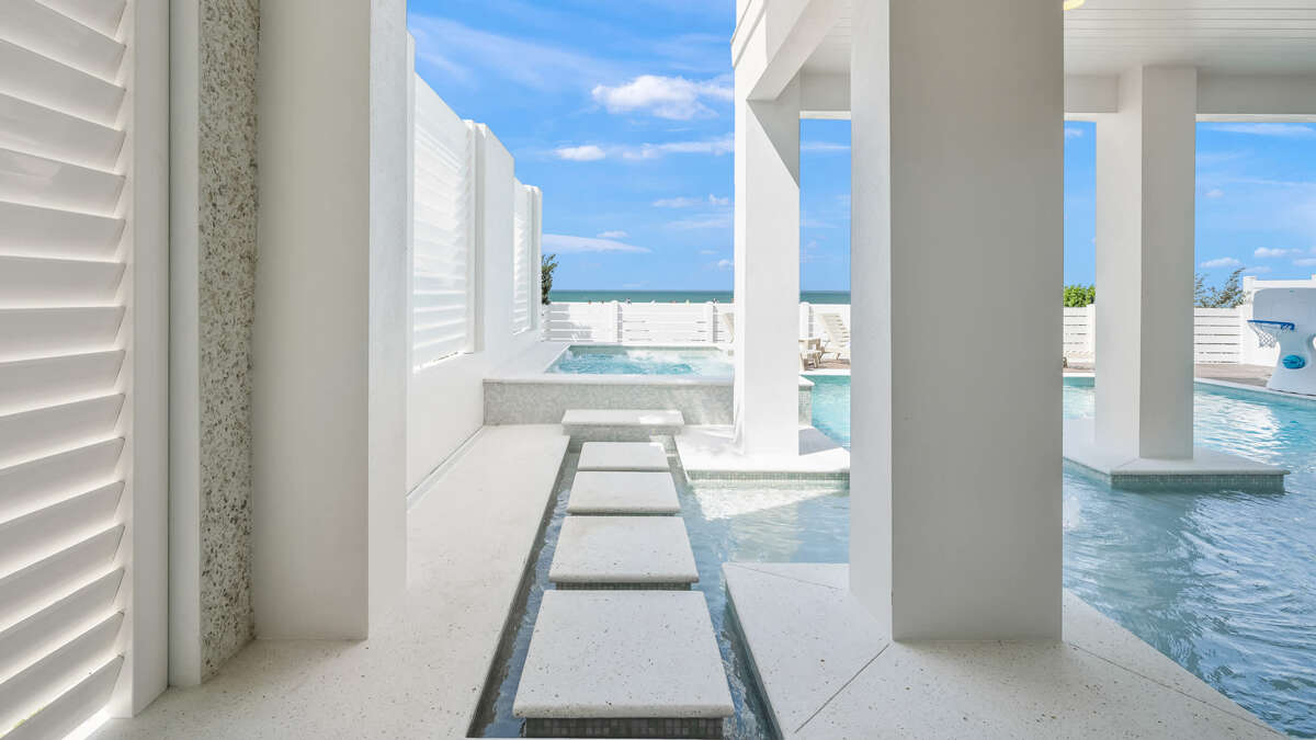 The ground floor begins with a private foyer offering both stair and elevator access to the upper levels. This level includes garage parking for 2 vehicles and driveway parking for 2 additional ones. Just beyond the foyer, your private beach access makes it easy to move between the sand and the home, with an outdoor shower conveniently placed inside the gate. The pool deck sits just steps away and features the resort-style pool and oversized spa, along with the outdoor seating, TVs, and entertainment amenities described above. Beach volleyball, jazzminton, and Kan Jam are provided for friendly competition on the sand. It’s a well-organized space that’s meant for laid-back luxury, warm breezes, and hours of poolside relaxation.
