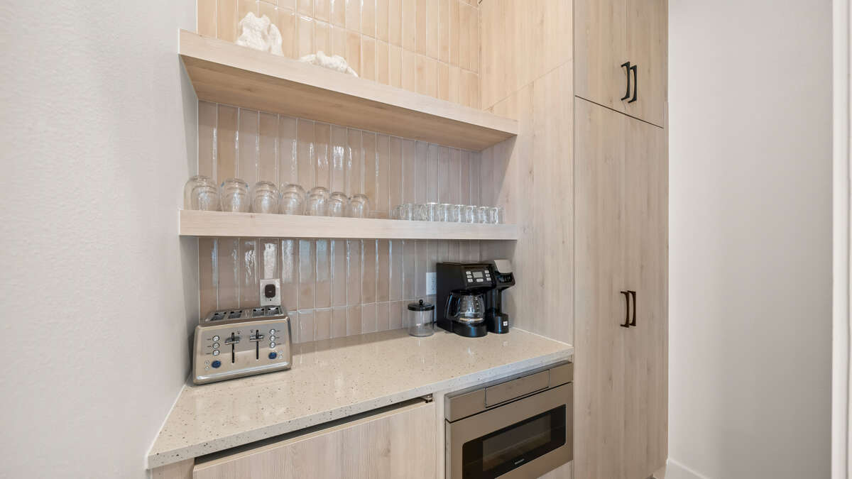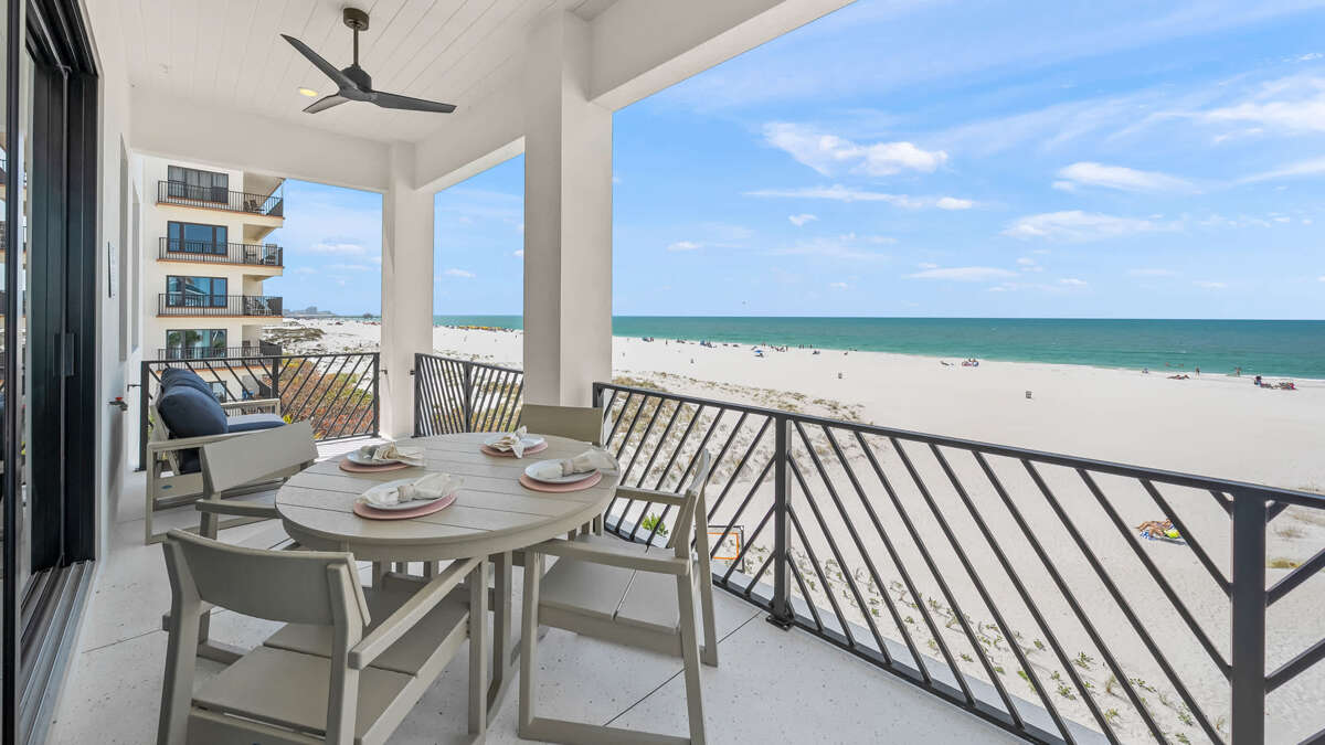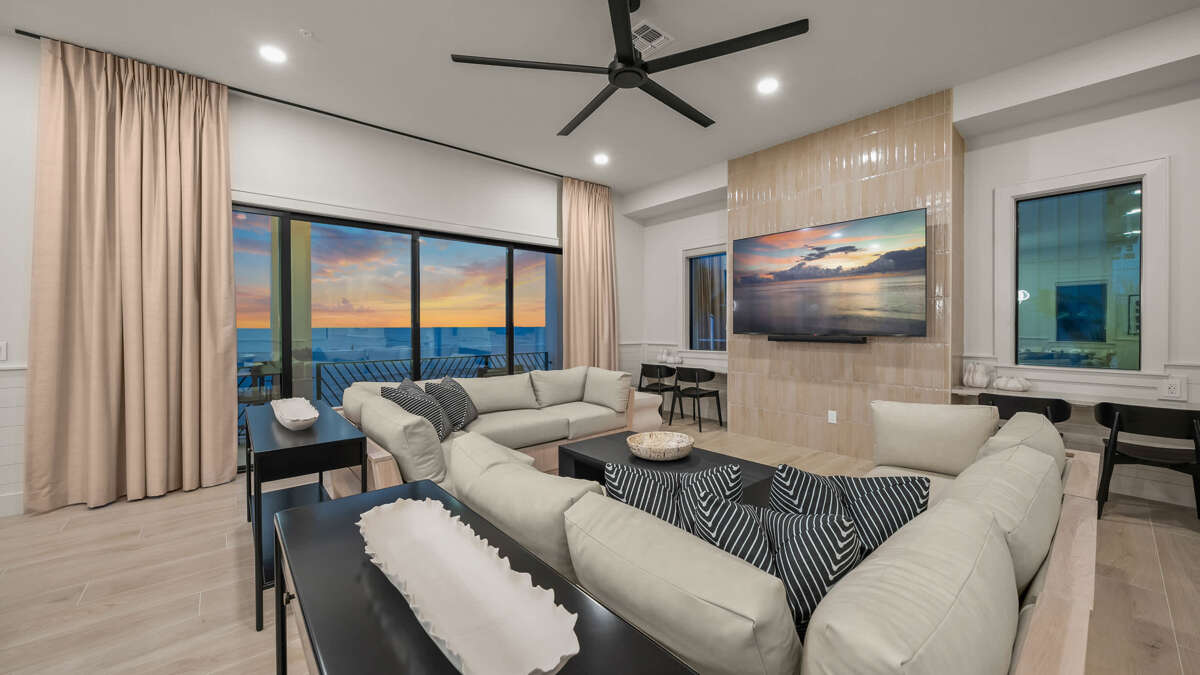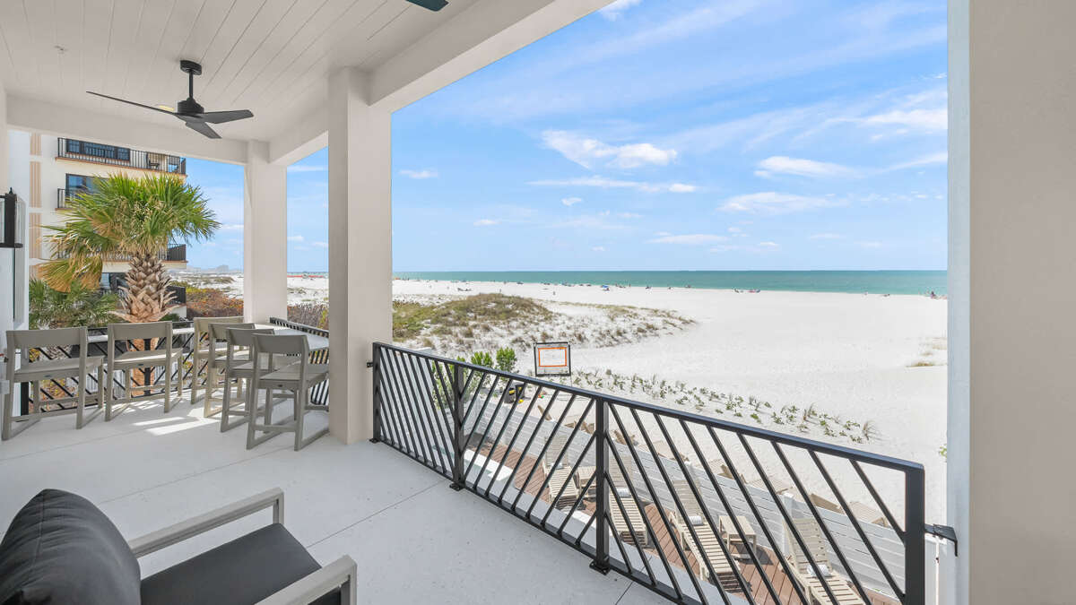 This level is the private sanctuary of the home, where comfort and coastal luxury come together. The spacious club room is made for relaxing and entertaining, featuring a cozy seating area, bar seating for 7, a media center for a true home theater experience, Nintendo Switch gaming console, wall scrabble and a fully equipped wet bar with a beverage fridge, sink, and ice drawer—perfect for movie nights or evening cocktails with a view. There is also a balcony access right off the club room, offering a breezy outdoor space with soft seating and dining for 4 where you can take in the sights and sounds of the coast. The Master Bedroom 1 that's on this level feels like a true escape. You will wake up to stunning views of Clearwater Beach and the Gulf of Mexico and unwind later in a spa-inspired bathroom with a freestanding soaking tub and walk-in shower. Even the walk-in closet in the Master Bedroom 1 has Gulf Views! Bedrooms 4, 5, and 6 (with Gulf Views!) each feature king beds, built-in ledge seating and private en suite bathrooms, giving every guest their own serene retreat after a day in the sun.