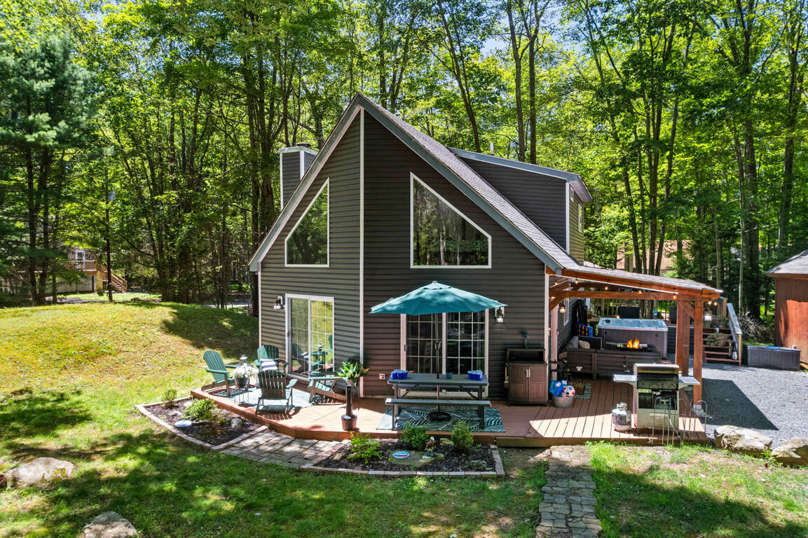 Explore our dog-friendly Poconos cabin, located in Arrowhead Lake, PA. From its warm hot tub to the inviting mountain view, this 3 bedroom cabin is the place you need to stay: The Eagles Nest