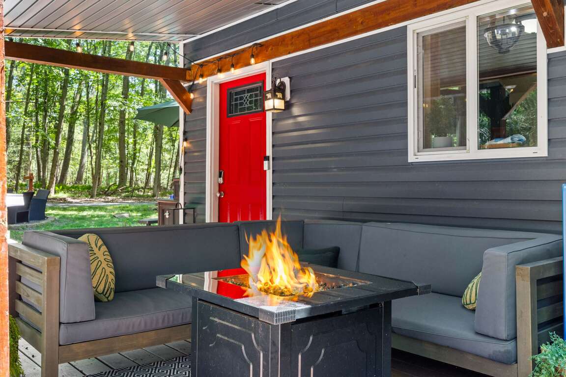 "Great wooded retreat that was very clean right down to the hot tub. Bring your own firewood for the fire pit and some friends for great memories. the house had anything we could want for our weekend stay and the host was super communicative. Great overall experience." - Adam B