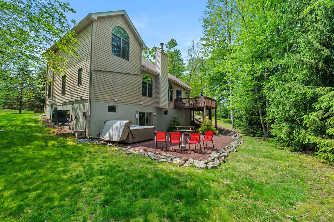 Situated in the serene Lake Harmony, PA, this property is an ideal vacation rental. With 5 bedrooms and standout amenities including a hot tub, sauna, and game rooms, it assures relaxation and fun for all: The Lookout