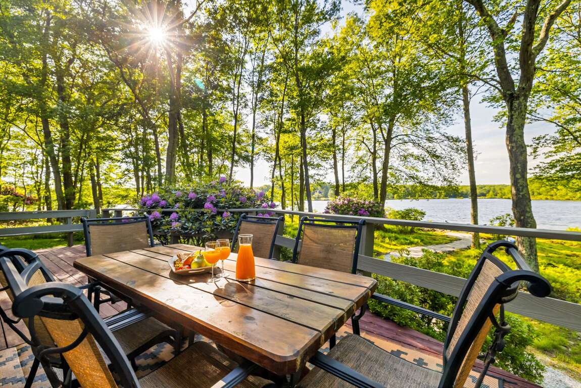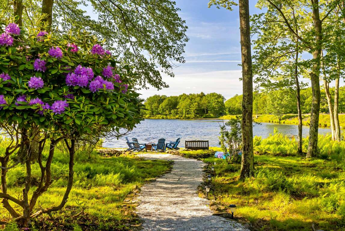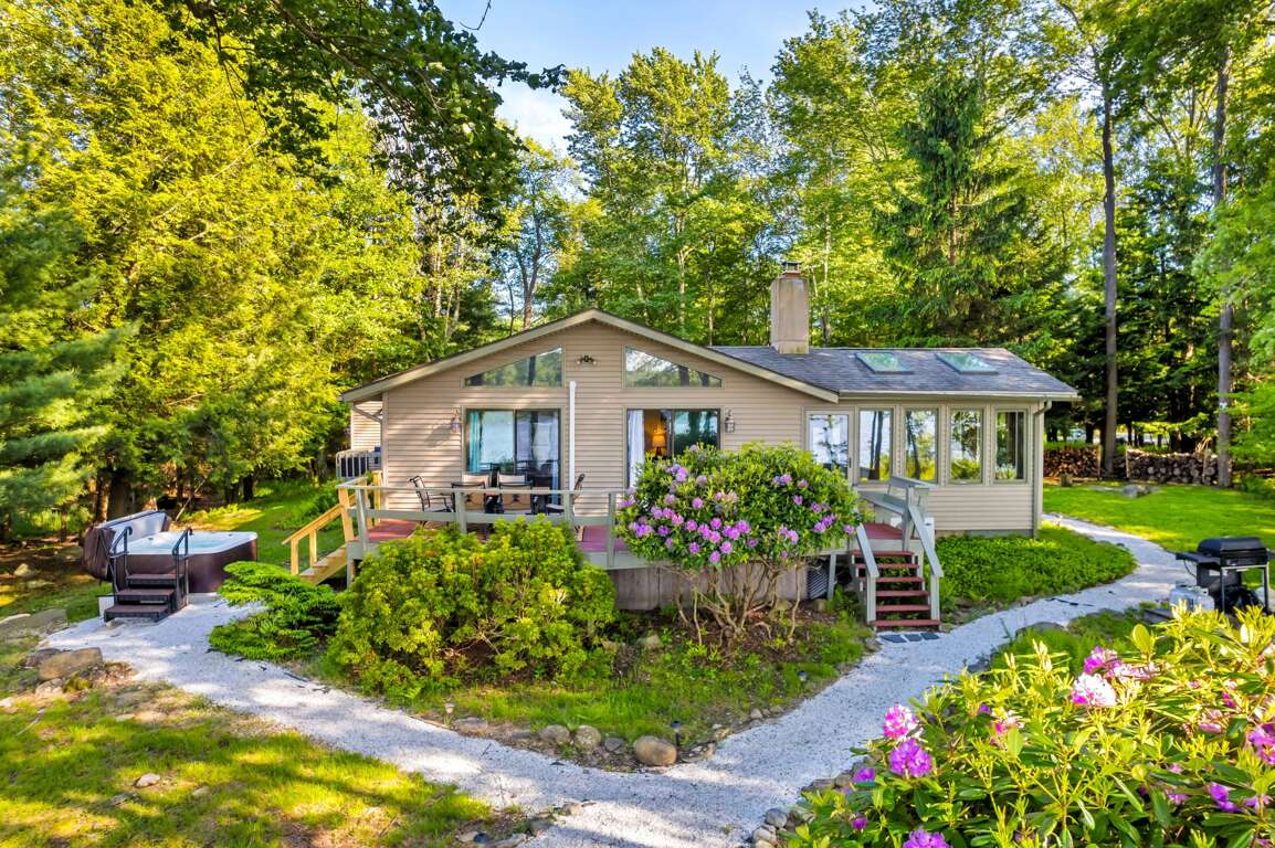 This 3-bedroom house in Gouldsboro, PA offers a lakefront view, hot tub, and is pet-friendly - an ideal place to stay for a serene getaway. Resort amenities included.