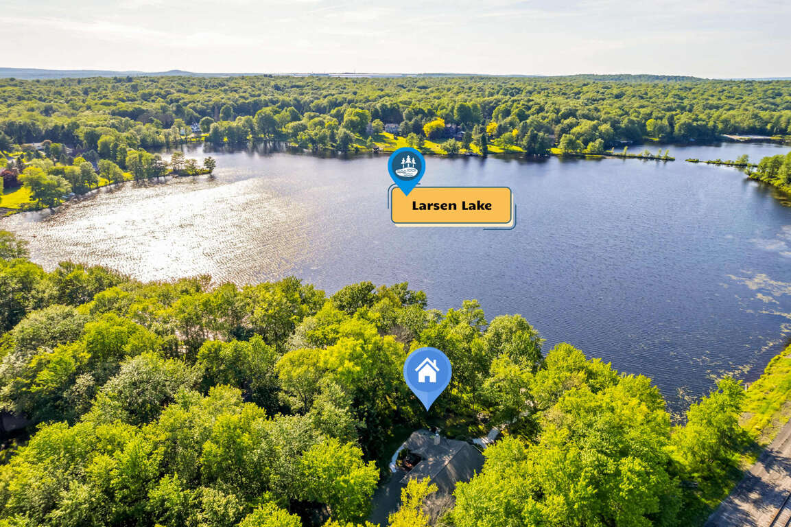 π True Lakefront Home | Breathtaking views on Larsen Lake with private lake access and beach area