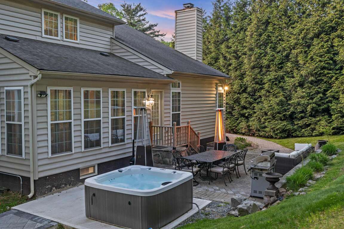 Nestled in the woods of East Stroudsburg, PA, this luxurious 5 bedroom cabin offers a lavish vacation rental with a hot tub, sauna, theater and game room: Cloud Nine Estate