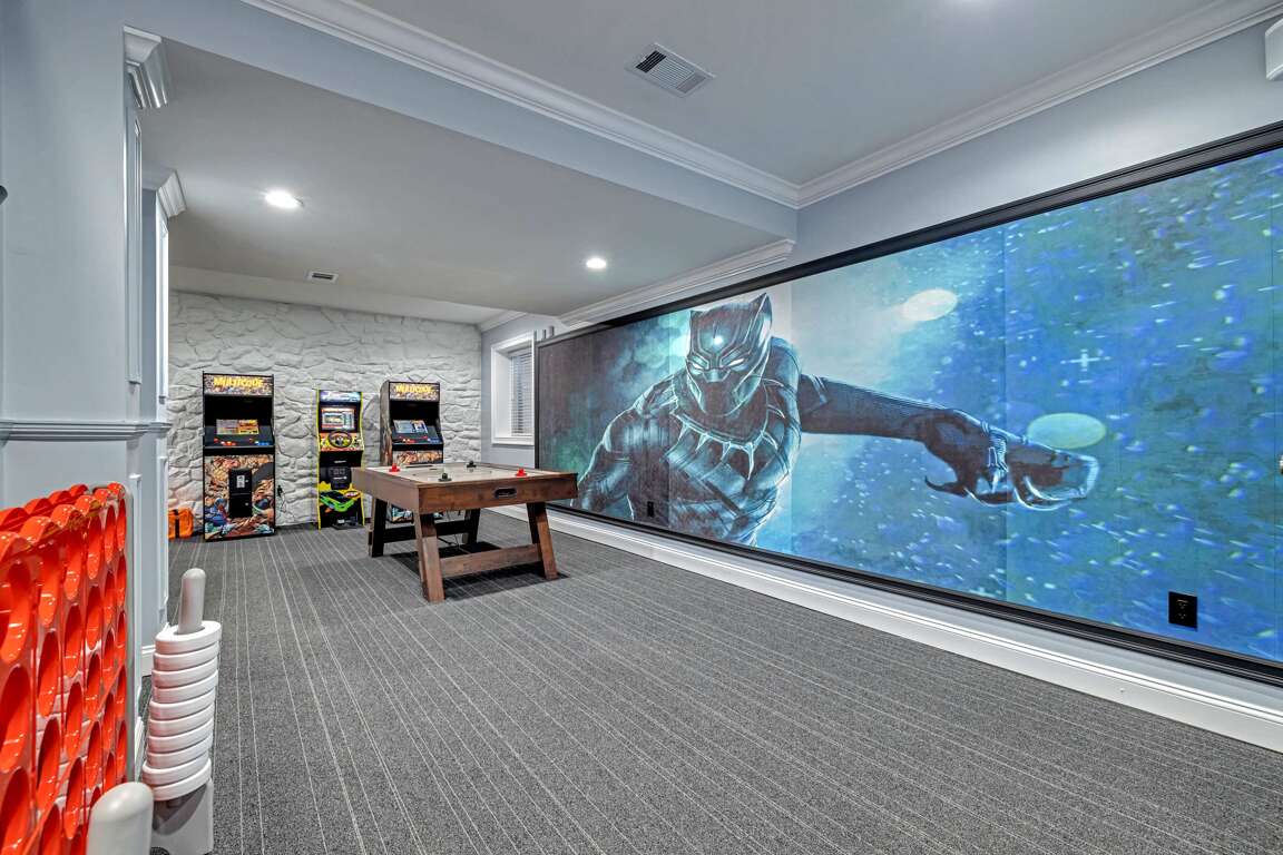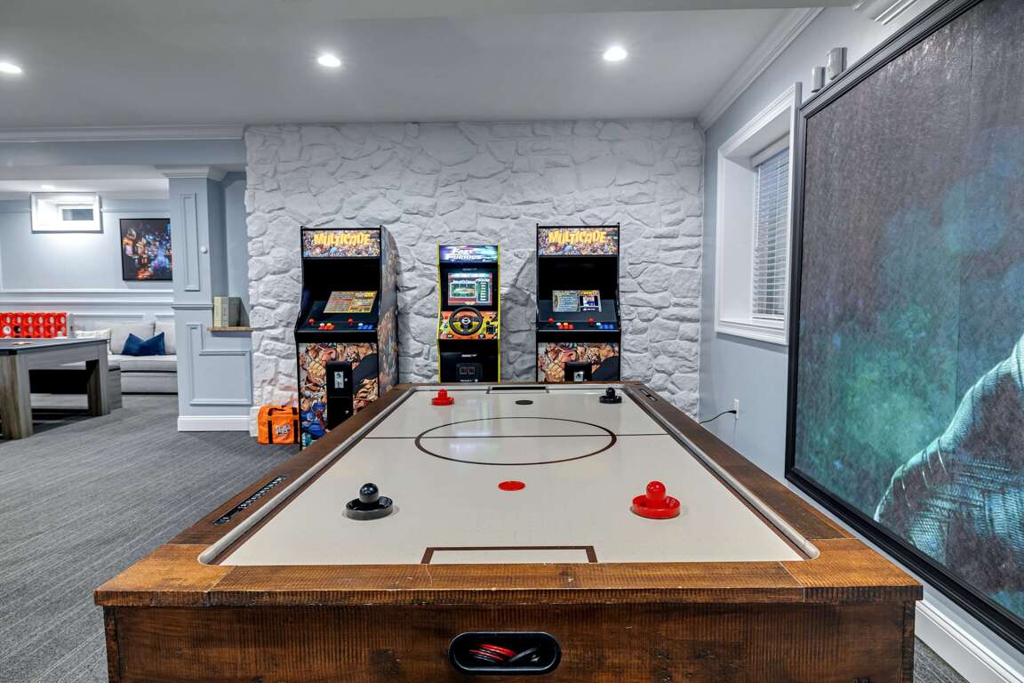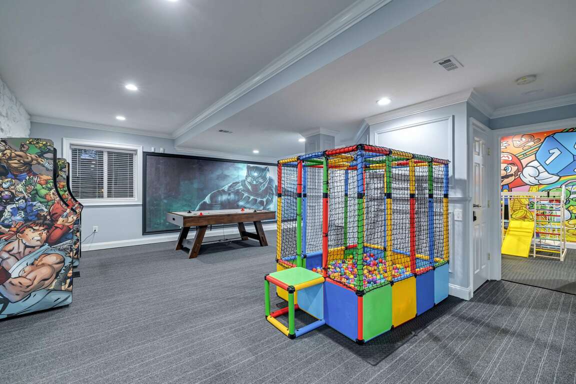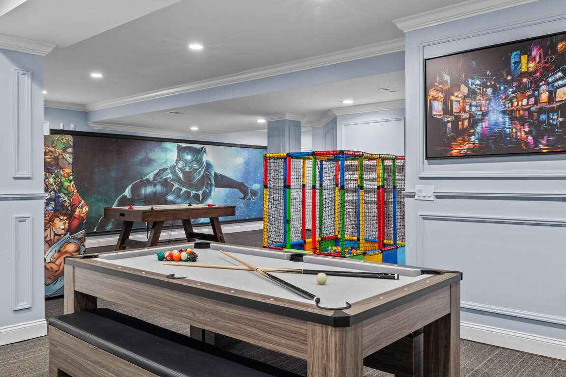 β Game room w/ pool + ping-pong table, air hockey, 3 arcade machines (The Fast and The Furious & Multicade), kids ball pit, large Connect4 & board games