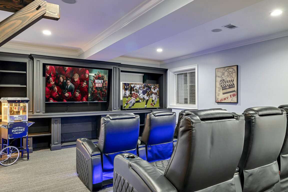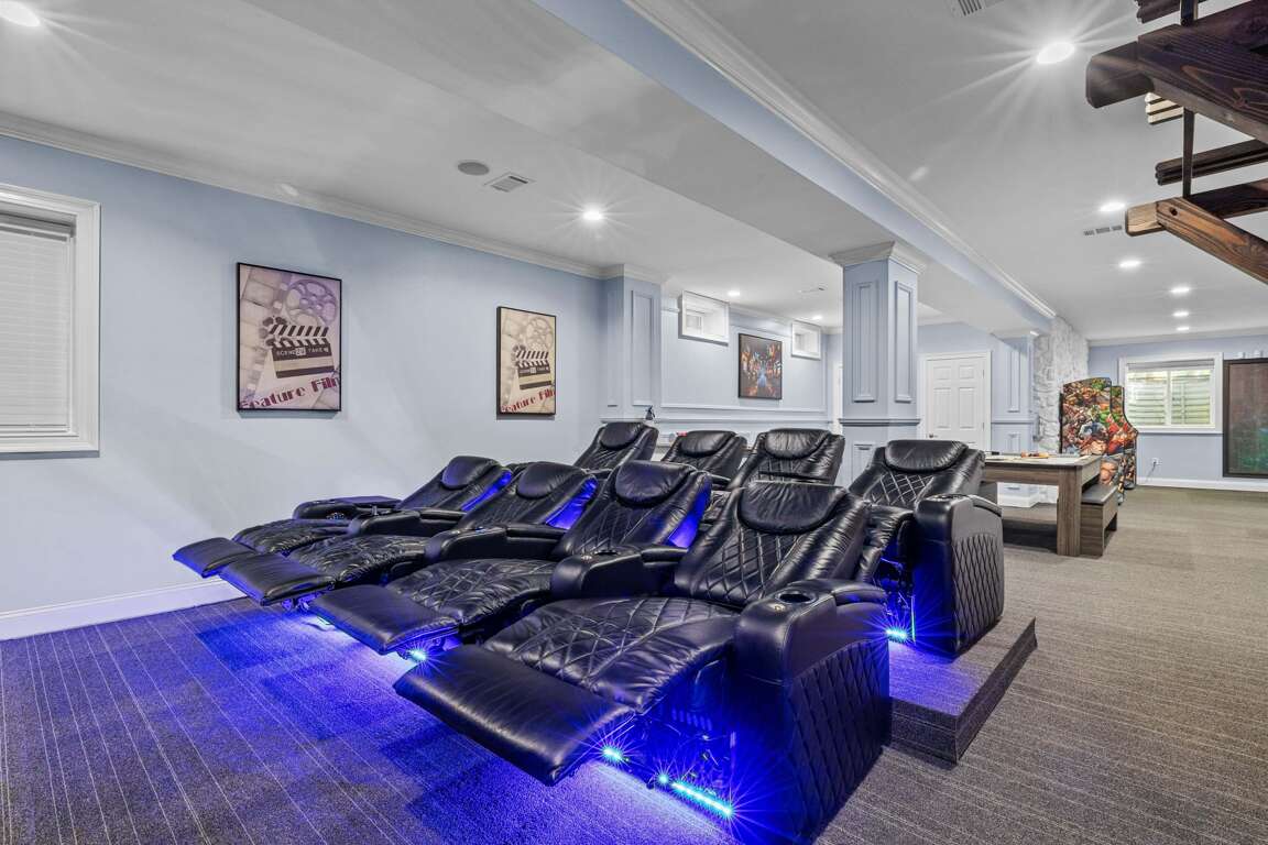 β Movie theater w/ reclining theater-style seating & popcorn machine