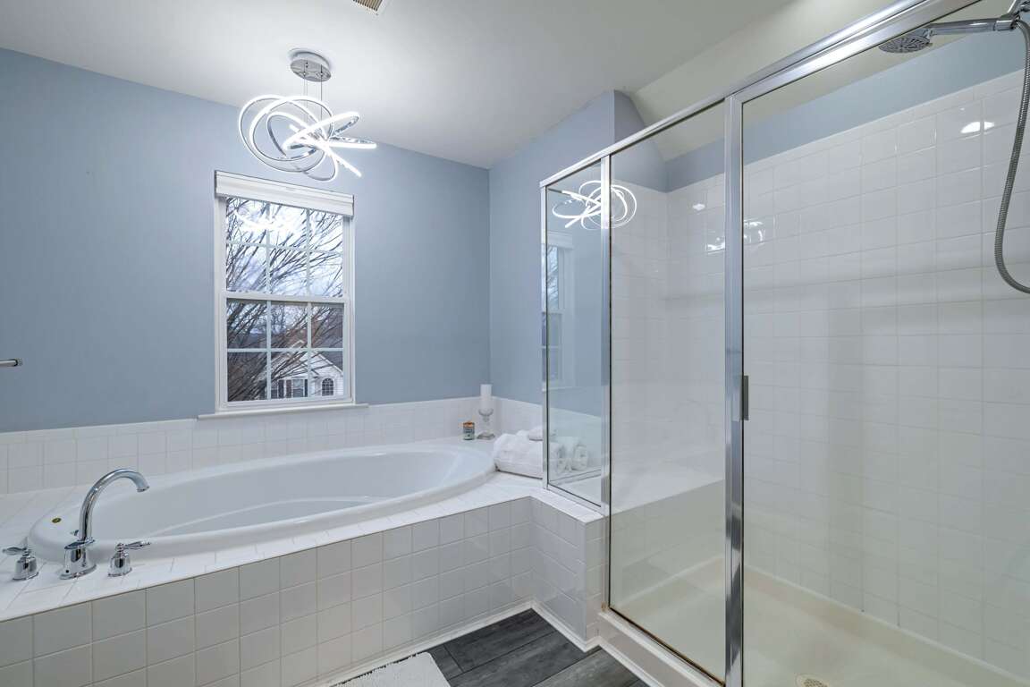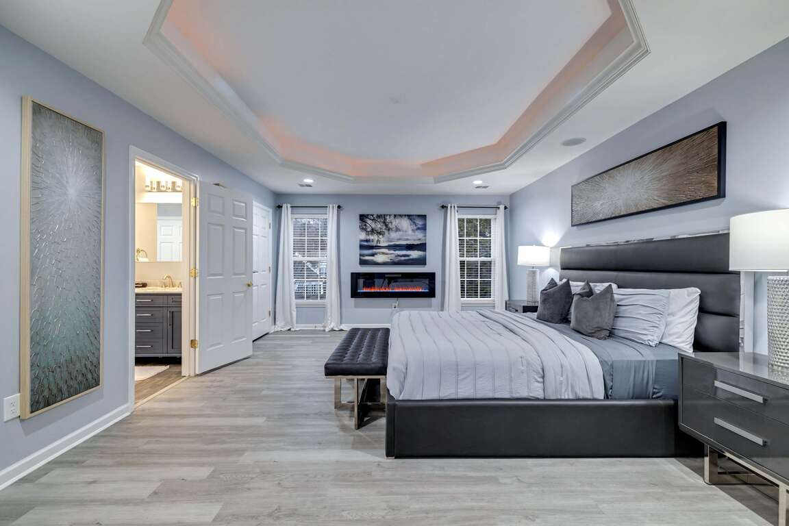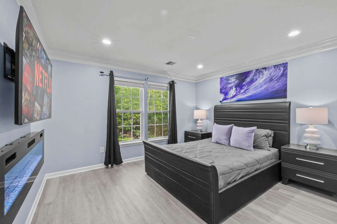 β Master bedroom suite w/ king bed, seating/TV area, shower & soaking tub