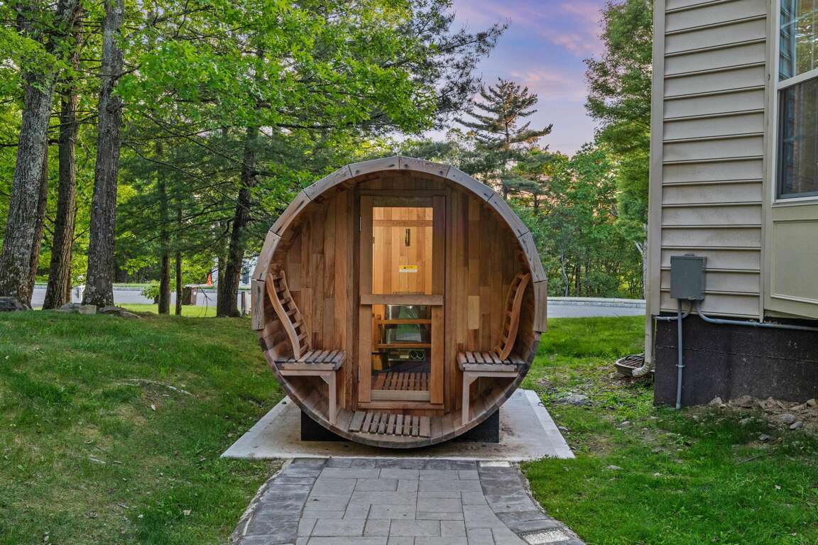 Nestled in the woods of East Stroudsburg, PA, this luxurious cabin offers a lavish vacation rental with unparalleled amenities; it includes a hot tub, sauna, theater and game room.